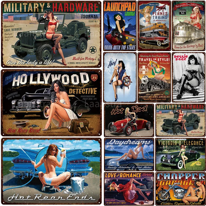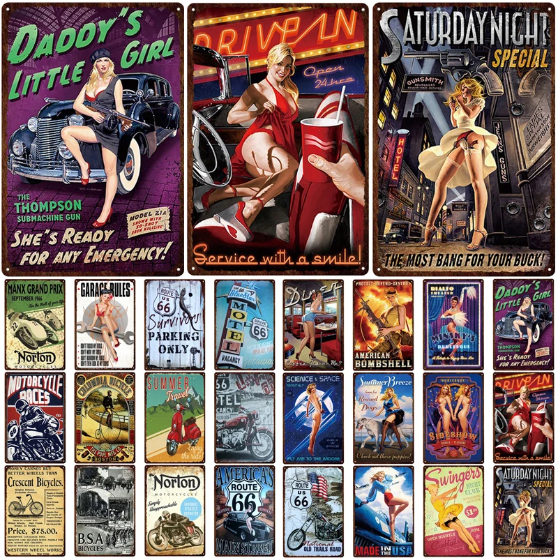 Европейская сексуальная девушка модель автомобиля винтажный Настенный декор оловянный Знак Домашний Декор Аксессуары...Купить сейчас