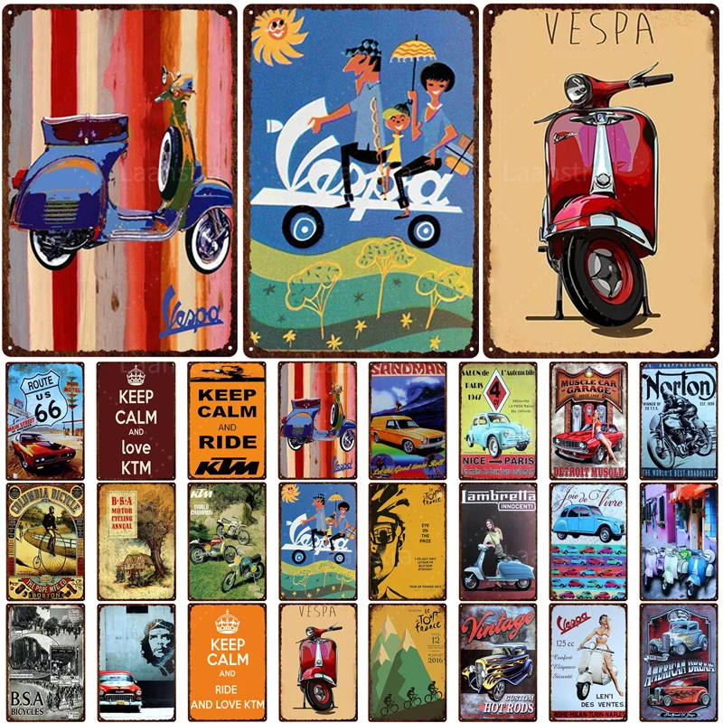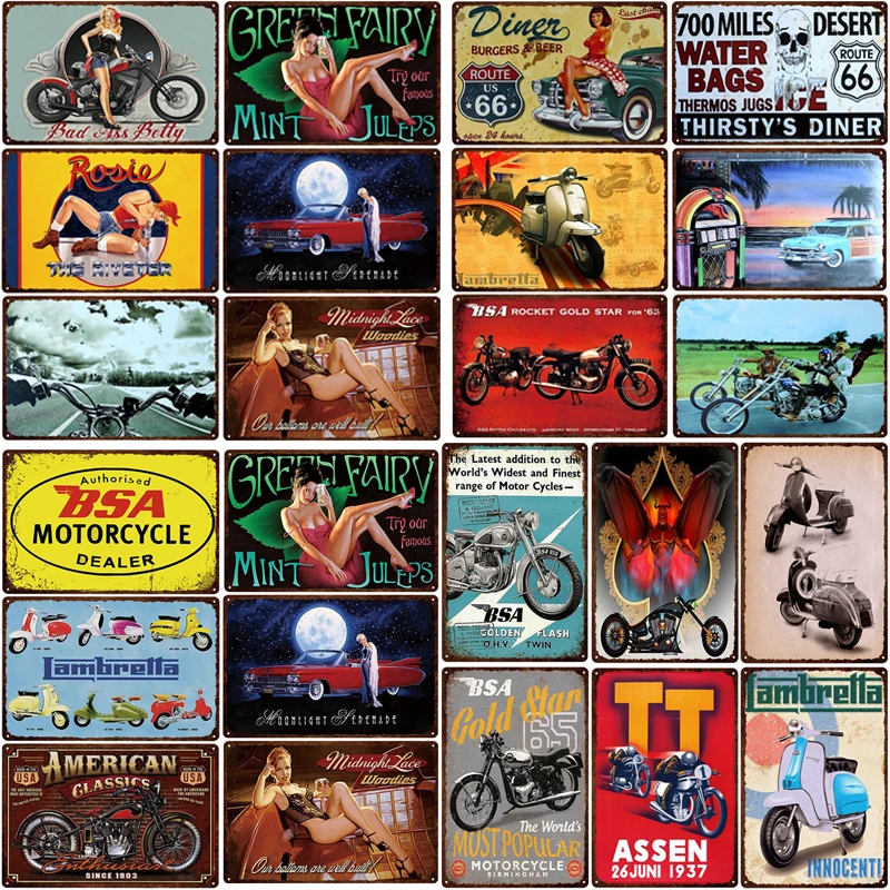 Винтажный автомобильный мотоцикл украшение для гаража ретро постер жестяные знаки Ретро металлический знак...Купить сейчас