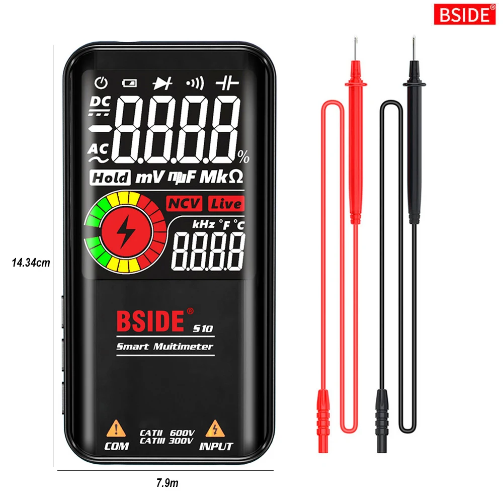 Емкость: 1nF-999.9nF ±(6.0% + 5), 1uF-99.99mF ±(3.0% + 3), разрешение: 0.001nF