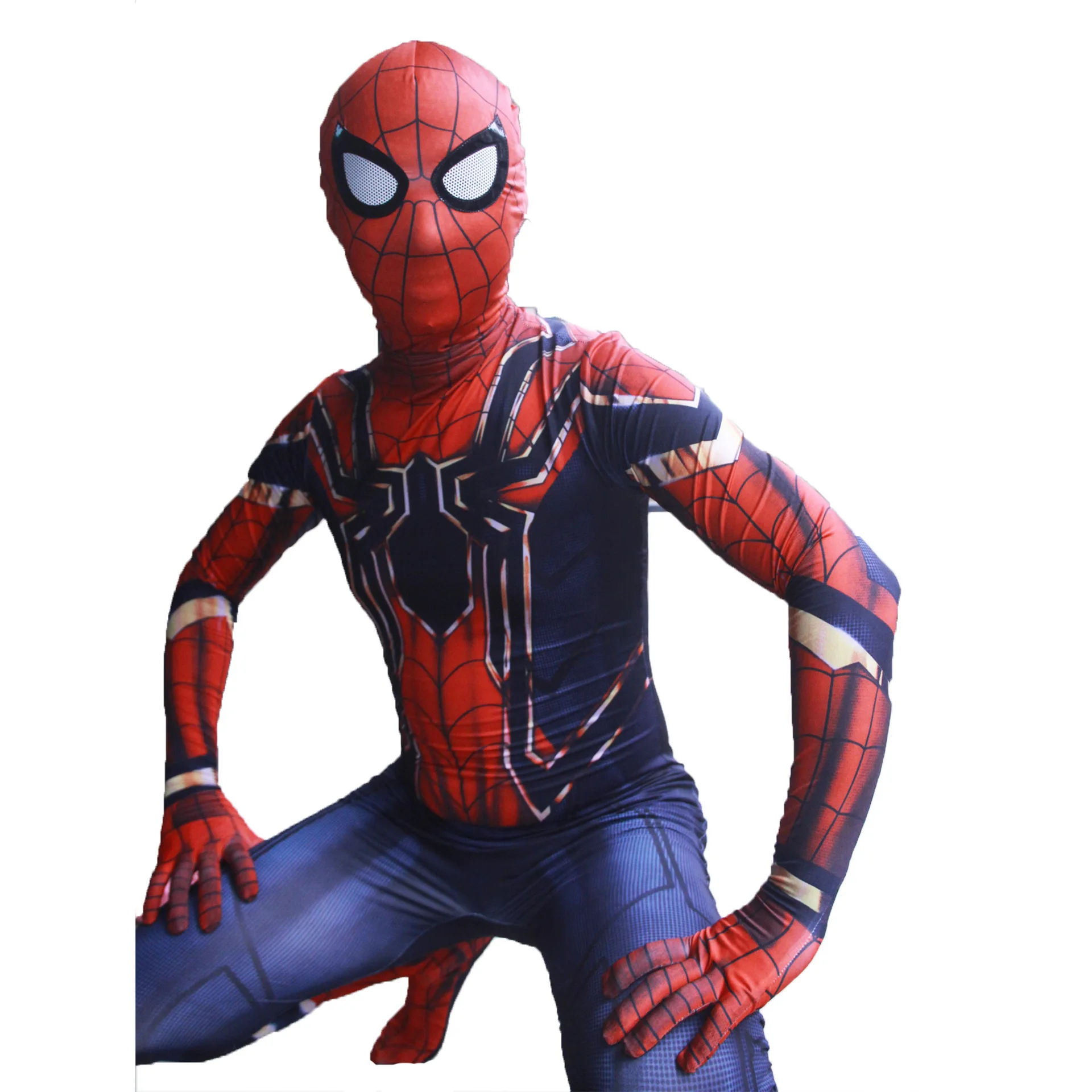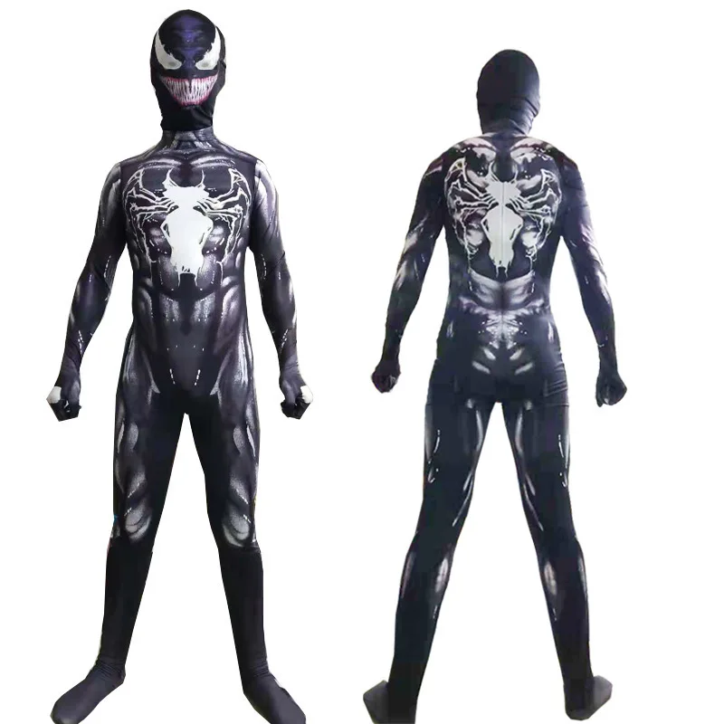 Высокое качество костюм нарядное платье для взрослых и детей костюм на Хэллоуин красный черный спандекс 3D косплей одежда