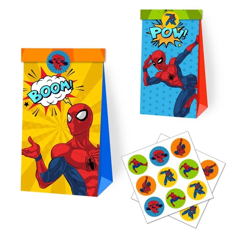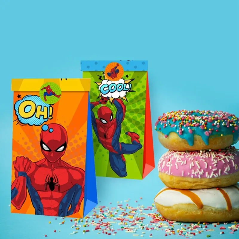 12 шт. на тему Человека-паука, бумажные подарочные пакеты с рисунками из мультфильмов, коробки с наклейкой, детские подарки на день рождения и вечеринку
