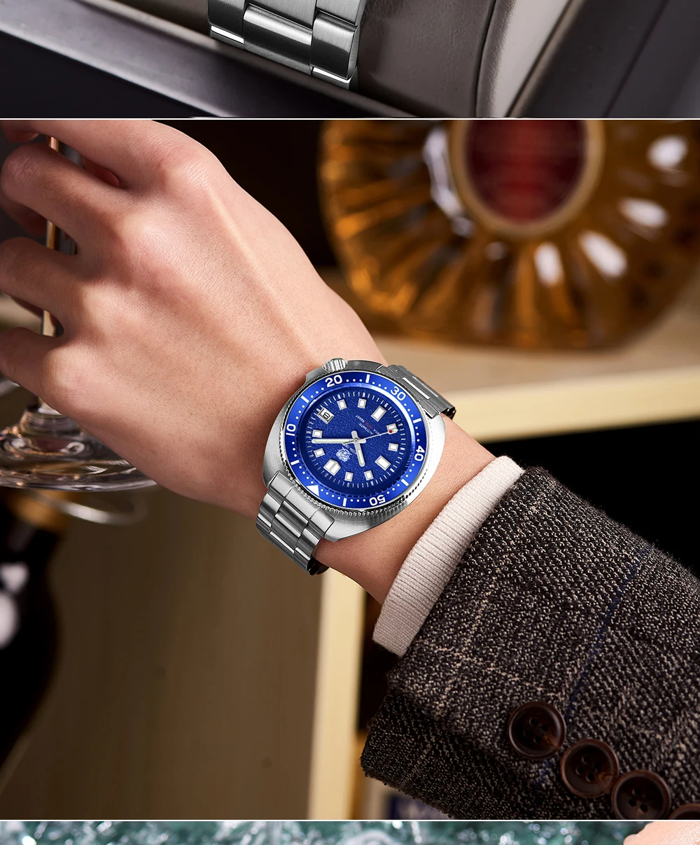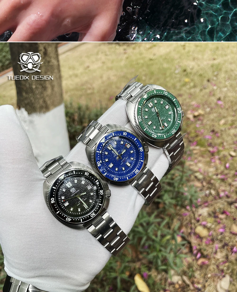 TUEDIX дизайн черепаха чехол часы для мужчин нержавеющая сталь NH35 погружение автоматические механические часы 20 бар водонепроницаемый сапфир TD-1862