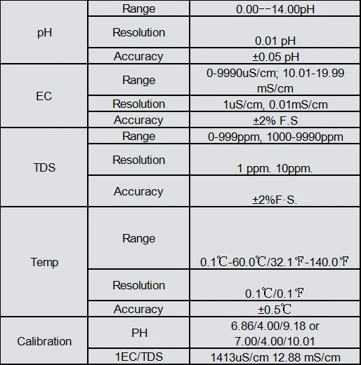 【Automatic автоматический калибровочный pH Tester】 с высокой чувствительностью стекло зонда, вы можете получить полный диапазон измерения 0-14pH, 0,01 pH разрешение. По сравнению с другими приборы для измерения pH, pH представляет собой 3-точечный метод калибровки, и наши pH является 5-ти точечные метод калибровки и оснащен порошок для калибровки (pH 4,00, pH 6,86, pH 9,18 и pH 7,00, pH10.01). Вы можете легко откалибровать, чтобы обеспечить точность ваших измерений.