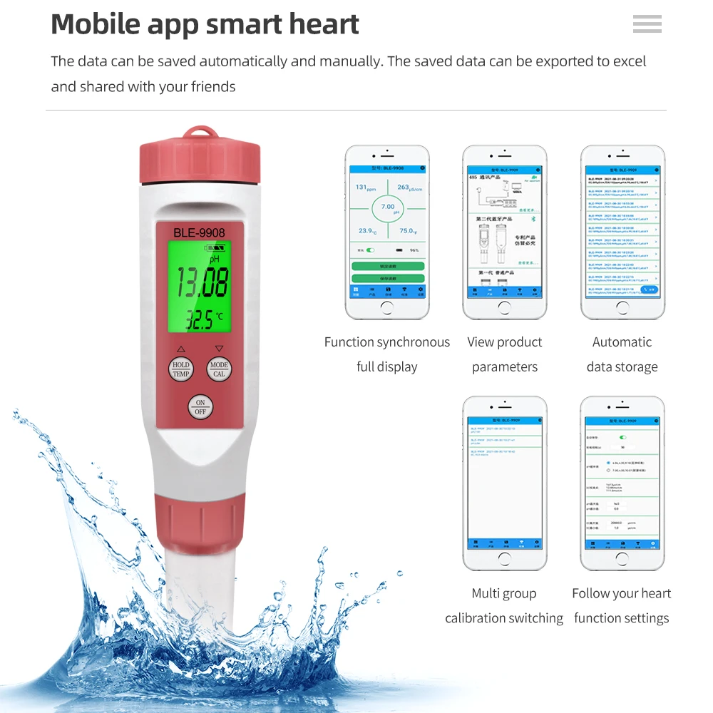 【Ph-метр с синим зубометром питание от мобильного приложения, профессиональное измерение PH/TDS/EC/TEMP(℃/℉). Подходит для бытовой питьевой воды, гидропоники, лаборатории, аквариума.