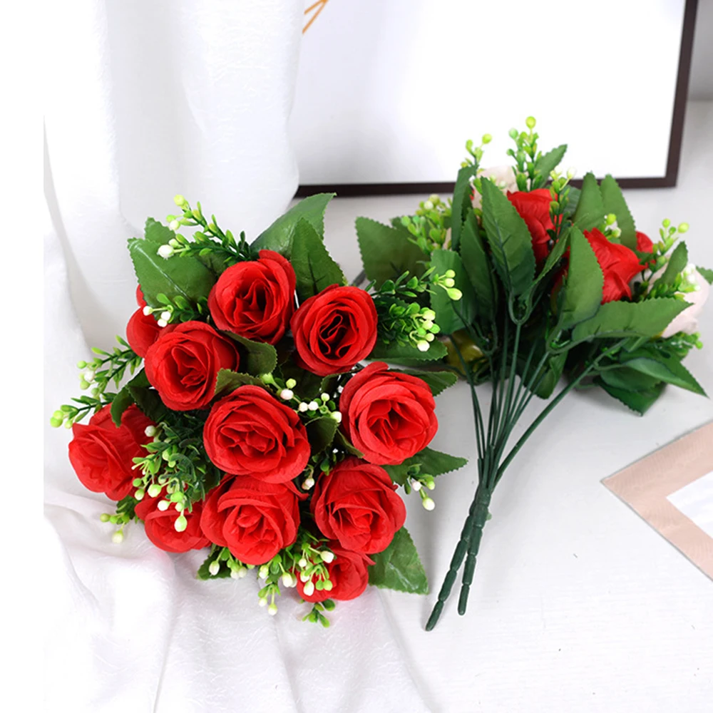 Шелковые красные розы 33 см, искусственные цветы для вазы, дешевый букет, сделай сам, для дома, гостиной, сада, свадьбы, вечеринки, Декоративные искусственные цветы