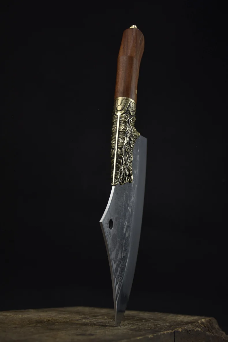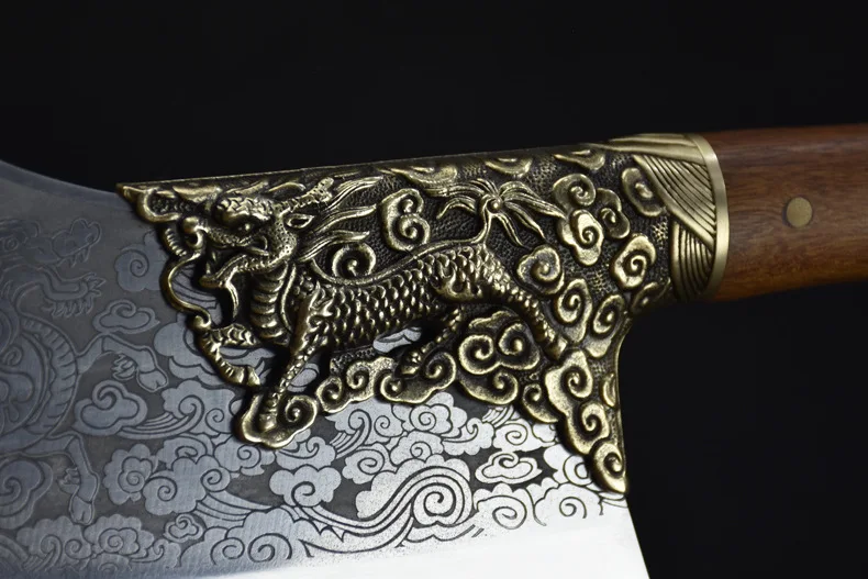 Longquan Ножи 7Cr17MoV ручной кованые Сталь Кухня ножи Медь Kirin Декор 9,5 дюймов мачете для нарезки Кливер Chop большой Ножи