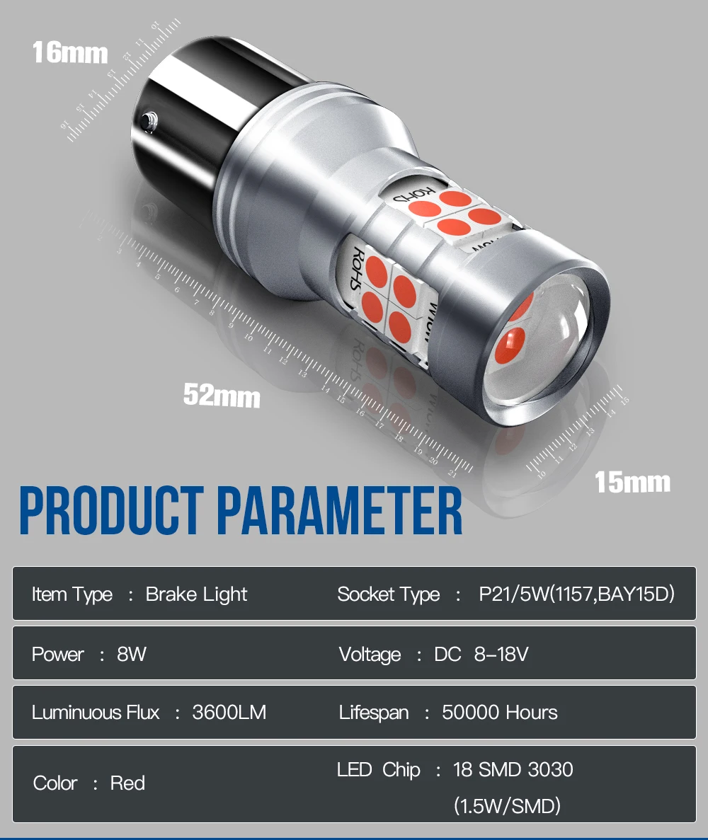 3. Тип разъема: P21/5 Вт (2357,1157,7528,BAY15D)