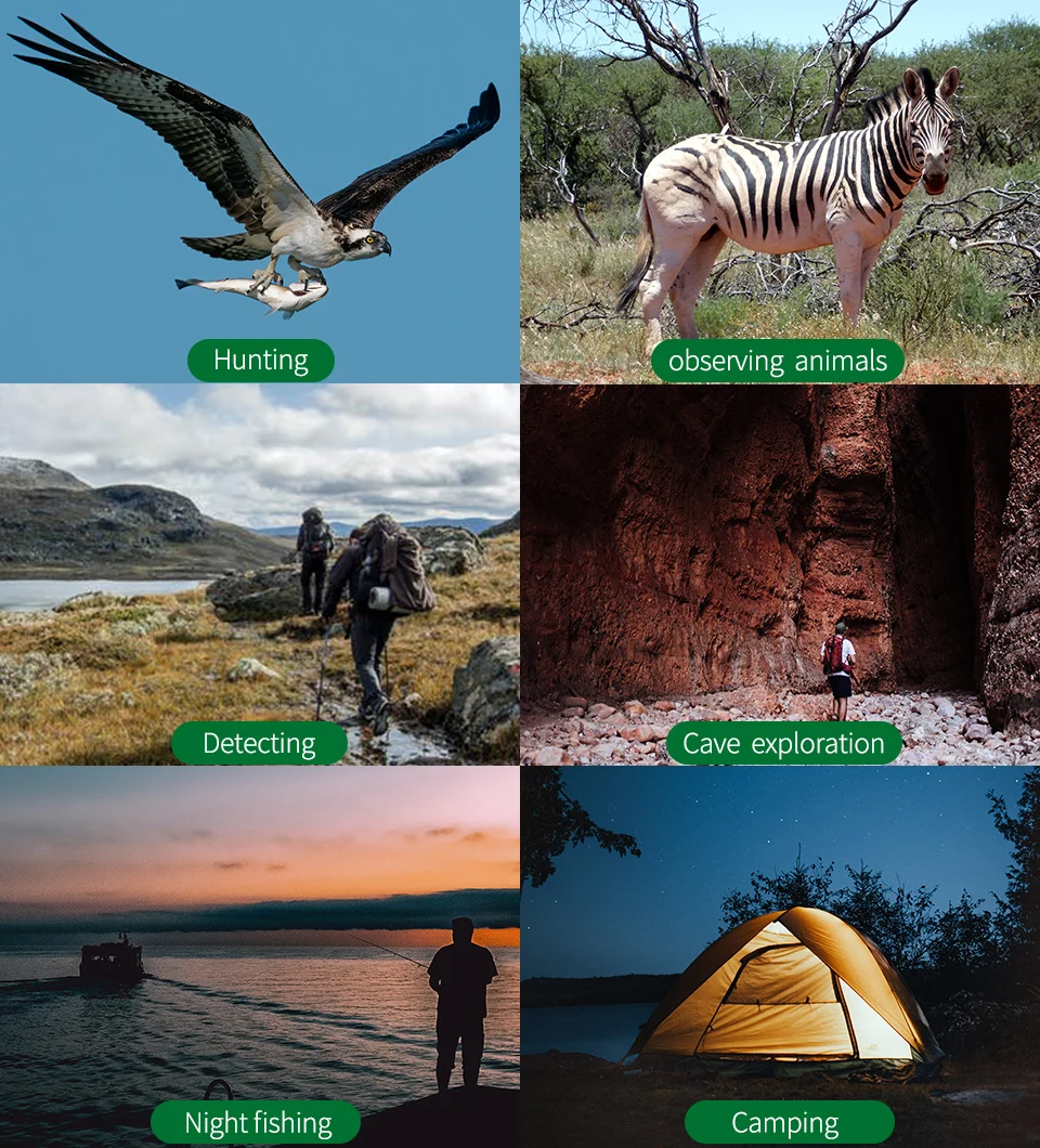 Военные, правоприменительные, охотничьи, полевые наблюдения, наблюдение, безопасность, навигация, скрытое наблюдение, развлечения и т. Д.