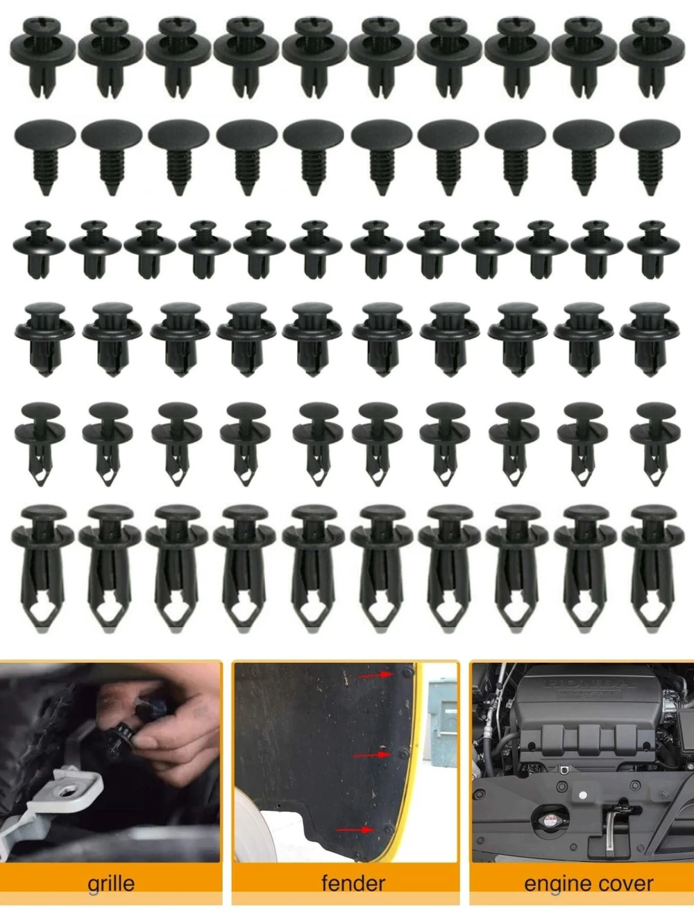 1. Изготовлен из высококачественного пластика, прочный и практичный в использовании2. Защита от износа и коррозии, широко используется для отделки дверей, крыльев, бамперов, радиаторов, боковых юбок, решеток и т. д.3. Быстро и легко снимите дверные панели и обрежьте зажимы, не повреждая их.4. Включает в себя 6 размеров, различные размеры для удовлетворения ваших различных потребностей, в общей сложности 60.5. Экономьте ваше время и деньги. Нет необходимости ходить в магазин автозапчастей, чтобы найти различные зажимы.