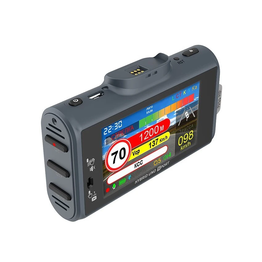 Модель HYBRID UNO SPORT оснащена современной матрицей SONY IMX307, которая обеспечивает высококачественную картинку и днем и ночью. Видеорегистратор, записывающий подробный видеоотчет о событиях на дороге, является одним из самых надежных свидетелей в случае ДТП, незаконного поведения злоумышленников и сотрудников ДПС. Модель HYBRID UNO SPORT является двухканальным устройством, имеющим возможность подключения камеры заднего вида и видеозаписи с двух камер одновременно. Отличительные особенности: Патч антенна на основе фазированной решётки Мощный производительный процессор AIT 8339 Удобное и быстросъемное магнитное крепление Возможность подключения второй камеры: салонная камера IP-G98T или камера заднего вида IP-360 Чёткая картинка как днём, так и ночью Видео в формате Full HD 1080р при 30 к/с Цветной и яркий дисплей 3 дюйма Датчик движения рук (Hand Motion Sensor) Новая GPS-база полицейских радаров (обновление еженедельно) Инновационная система фильтрации позволяет свести к минимуму количество ложных срабатываний от датчиков движения, автоматических дверей, устройств контроля слепых зон автомобиля и других устройств, работающих в диапазонах, аналогичных диапазонам полицейских радаров. Сигнатурная часть работает на основе библиотеки сигнатур, разработанной производителем. Сигнатура - это цифровой код сигнала, посылаемого радаром или какой-либо другой системой контроля. HYBRID UNO SPORT определяет тип радара по его сигнатуре и оповещает об этом пользователя. В библиотеку сигнатур входят все устройства, используемые на дорогах России и СНГ. Библиотека сигнатур также подлежит обновлению. HYBRID UNO SPORT обладает самыми современными функциями, которые позволяют ему не беспокоить пользователя без необходимости GPS-датчик позволяет: устанавливать сигнала о превышении OSL OverSpeedLimit записывать скорость транспортного средства записывать направление движения записывать координаты автомобиля фильтровать сигналы Общие технические характеристики: Процессор: AIT 8339 ЖК-дисплей: 3" Датчик удара: G-sensor Встроенный динамик: есть Встроенный микрофон: есть Регулировка громкости: есть Отключение звука: есть Русский язык: есть Английский язык: есть Крепление: на 3М скотче Крепление аппарата: магнит Вес с креплением: 119г Размер: 96 х 56 x 25 мм Потребляемый ток: 370 мА Рабочая температура: от –20°С до +70°С Характеристики радар-детектора: Приемник сигнала: патч-антенна (фазированная решётка) Тип детектора: частотный дискриминатор Обработка сигнала: цифровая Отключение отдельных диапазонов: есть Диапазон K: 24,150 ГГц ± 100 МГц Диапазон Ka: 34,700 ГГц ± 1300 МГц Диапазон X: 10,525 ГГц ± 50 МГц Детектор лазерного излучения: 800-1100 нм Угол обзора лазерного детектора: 180° Поддержка режимов: Ultra-K, POP Режимы: Город, SMART, Трасса GPS-информатор: встроенный Обновления: происходят бесплатно Память настроек: есть Характеристики видеорегистратора: Разрешение видео: Full HD (1920х1080p), 30 кадр/сек Угол обзора камеры: 140° Матрица: SONY 307 Материал линзы: стекло Поддержка MicroSD: до 64 Гб Комплектация: Комбо-устройство SilverStone F1 HYBRID UNO SPORT Магнитное крепление на лобовое стекло автомобиля Адаптер питания с разъемом прикуривателя Картридер(переходник с microSD на USB) Руководство пользователя (инструкция по эксплуатации) Гарантийный талон Гарантия: 1 год