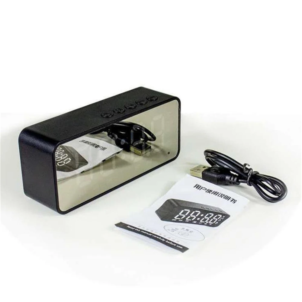 Многофункциональный: не только bluetooth-динамик, он также может использоваться как будильник, fm-радио, термометр, зеркало. Поддержка воспроизведения карты TF, мобильный телефон для ответа на звонки.