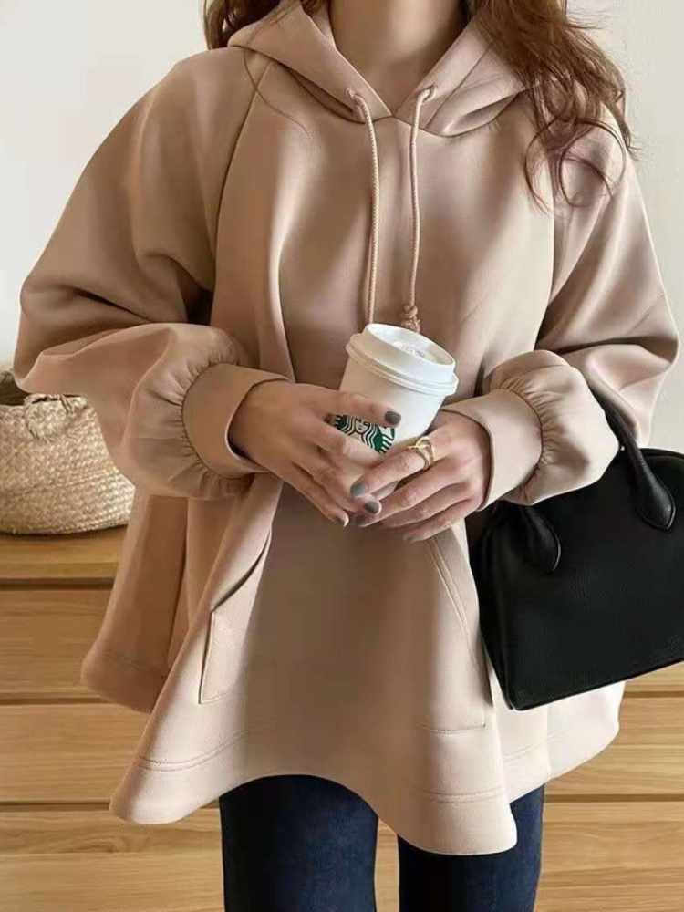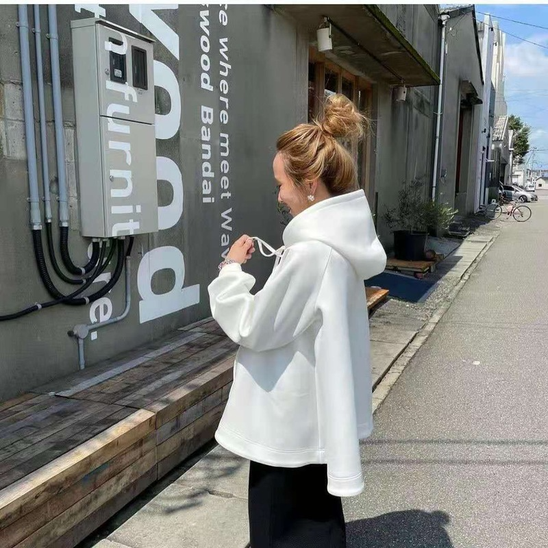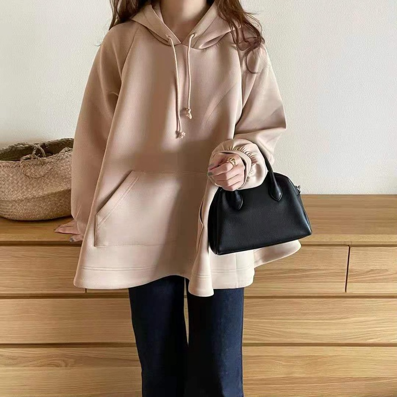 Толстовки женские топы Модные весна осень пуловер с капюшоном свободные длинные рукава шнурок сплошной цвет карман Tenafeicc