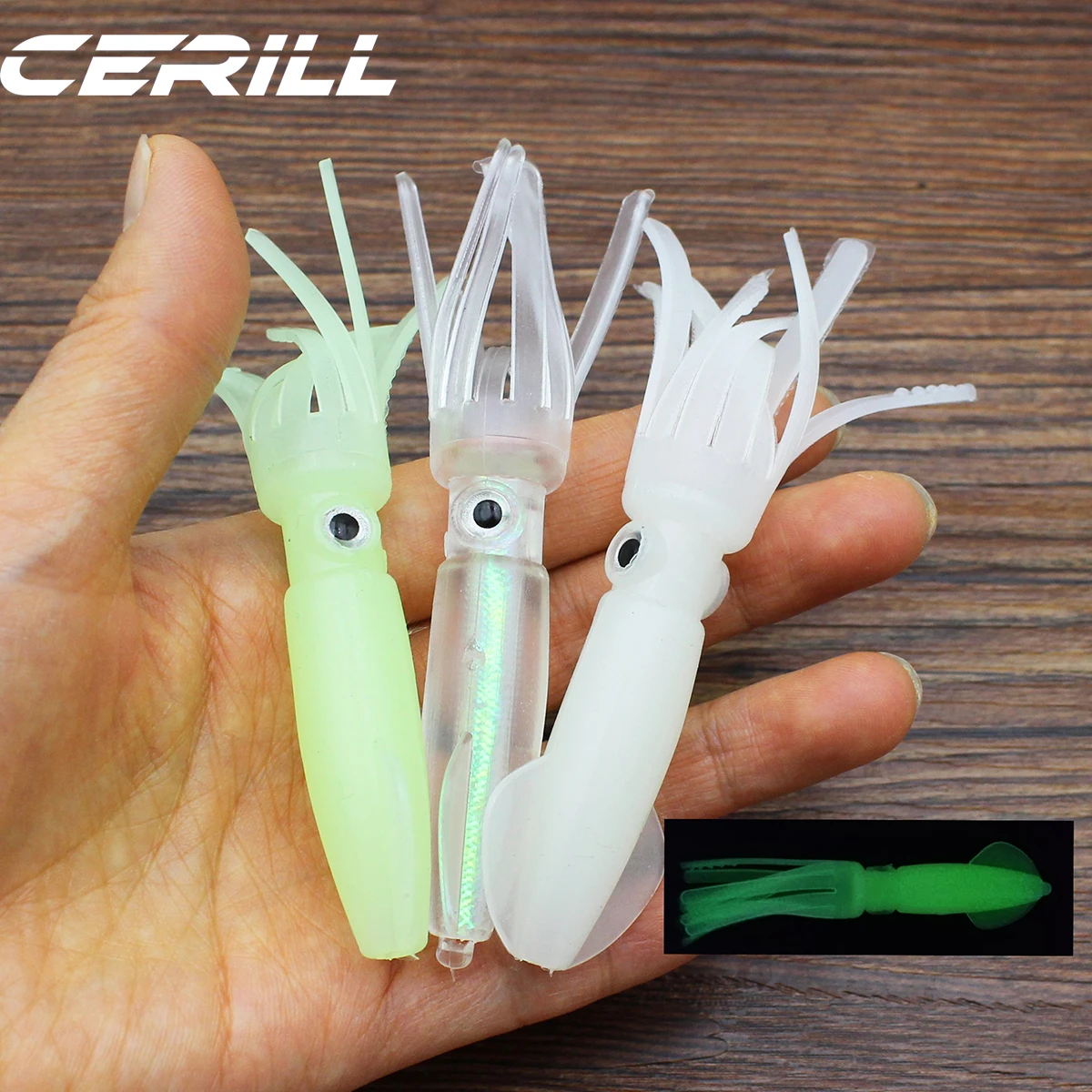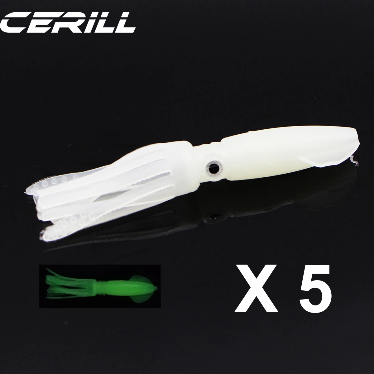 Cerill 5 шт 10 см 9 г светящаяся юбка осьминога мягкие приманки для ловли на блесну джиг воблер Shad кальмар червь силиконовая искусственная наживка