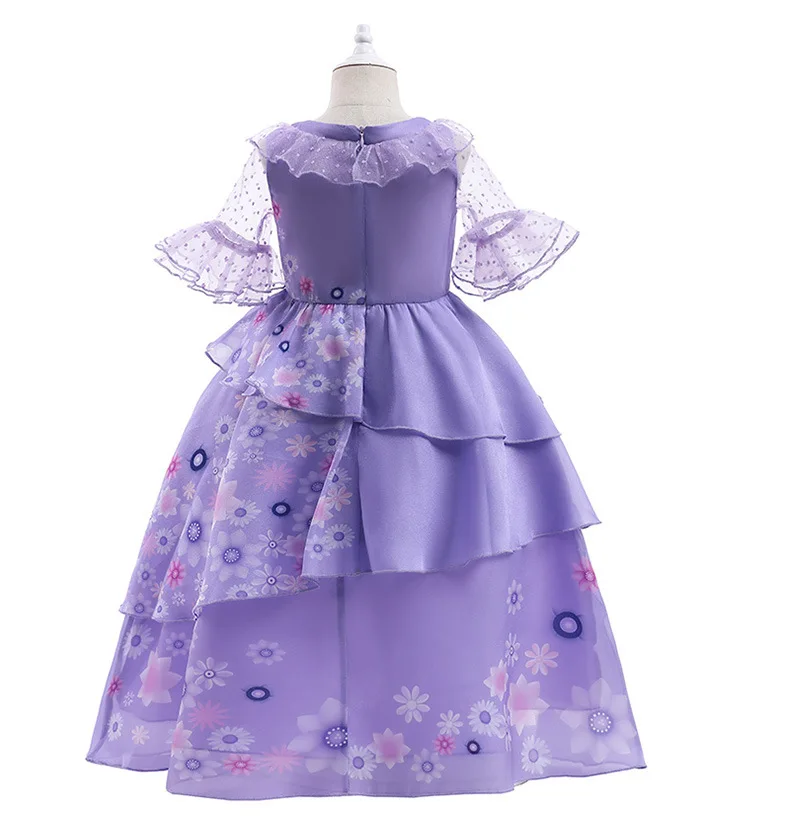 Популярные костюмы для костюмированной вечеринки в стиле аниме Encanto Isabella, фиолетовые платья с цветочным рисунком платье для девочек юбка с отвесными рукавами Детские вечерние платья детская одежда для дня рождения, карнавала