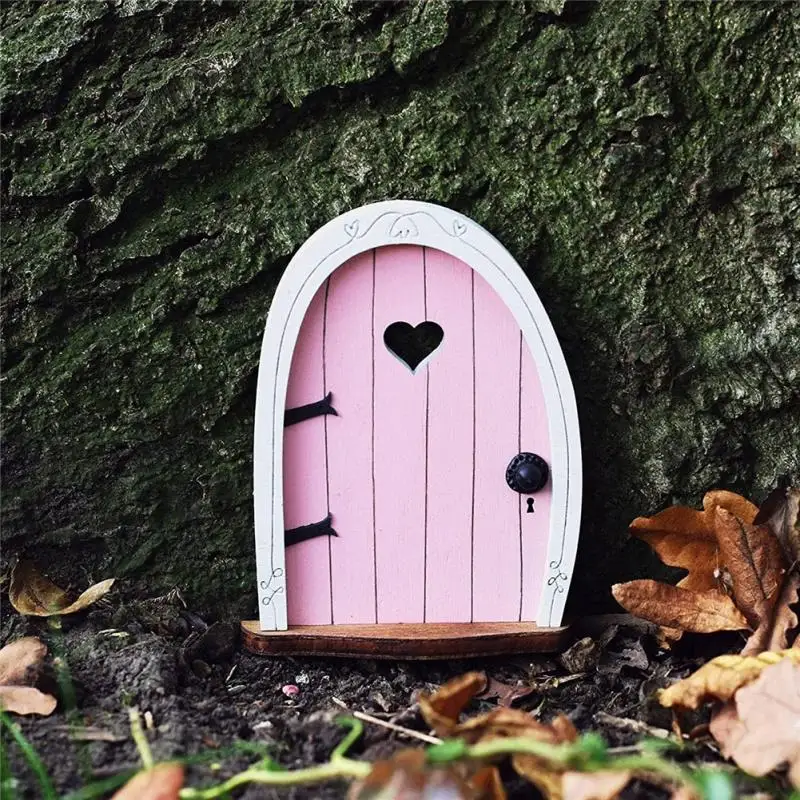 Деревянный трехмерный Сказочный дверной Набор для творчества: маленькая круглая дверь феи, откидная дверная рама в форме сердца и красивый подвесной знак.