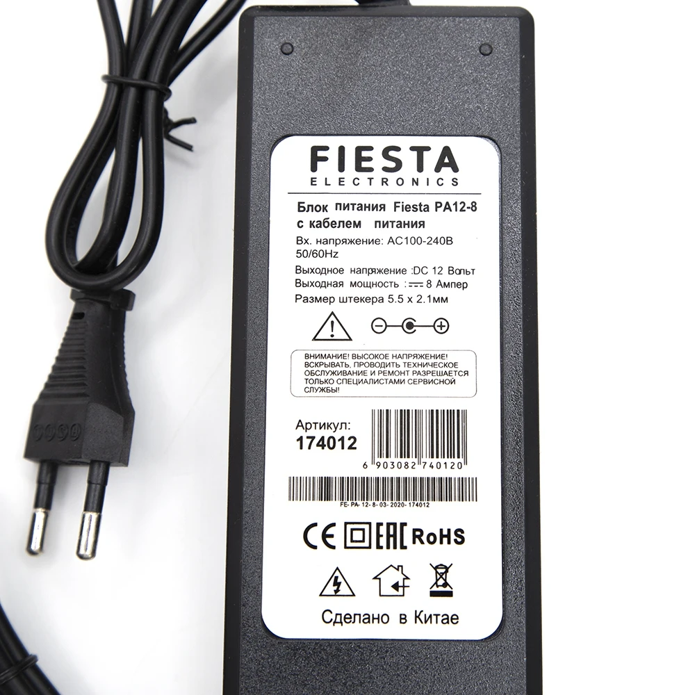 Название | Блок питания Fiesta PA12-8 с кабелем питания (12 вольт 8 ампер) |