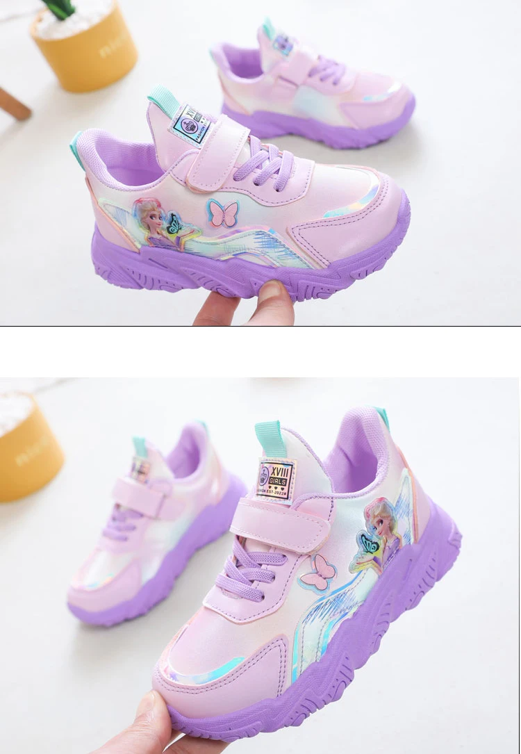 Disney Kids/Повседневные кроссовки для девочек с милым принтом «Холодное сердце», «Принцесса Эльза»; Уличная обувь; Детская нескользящая обувь; Сезон весна-осень