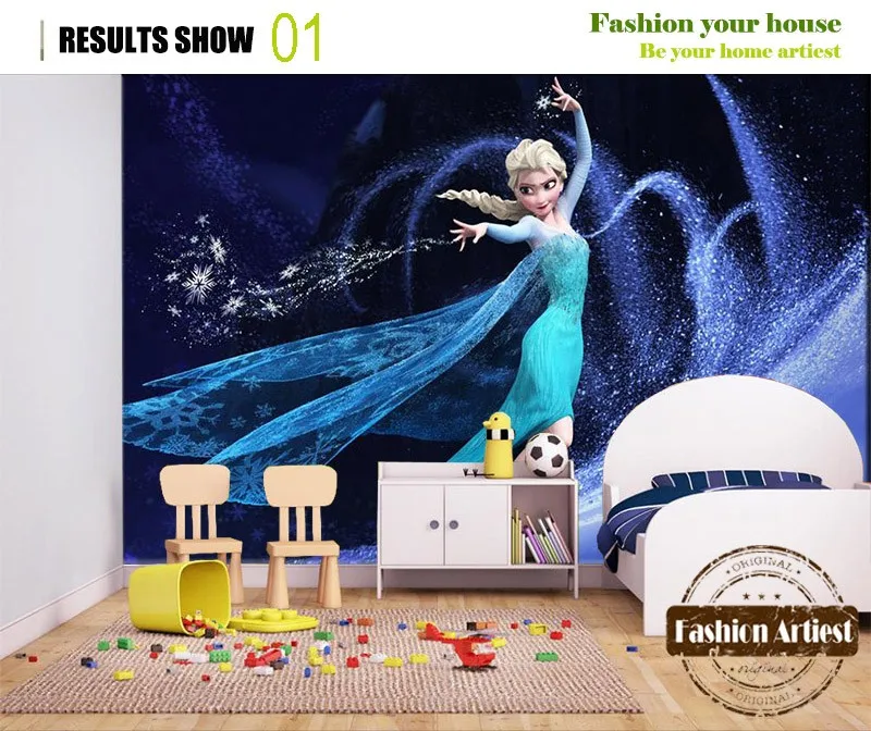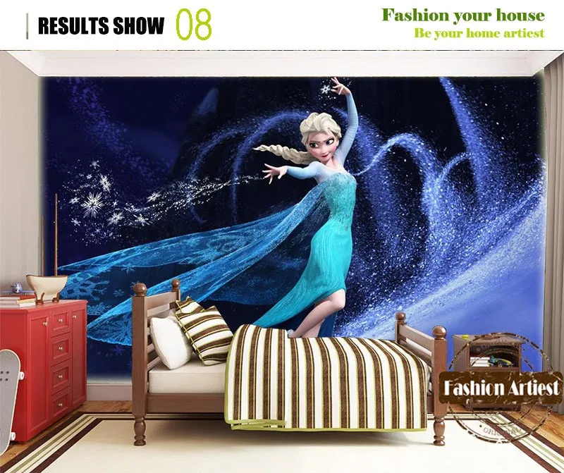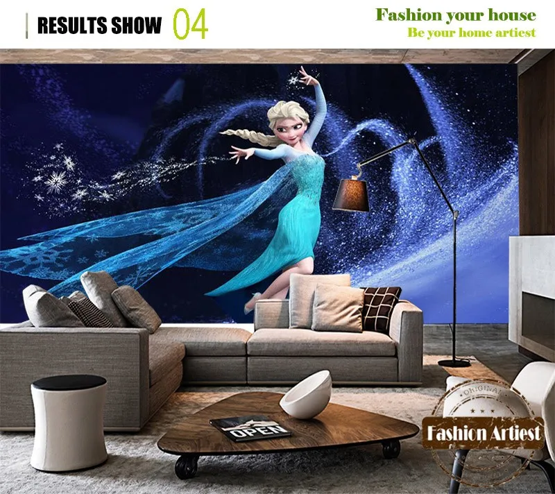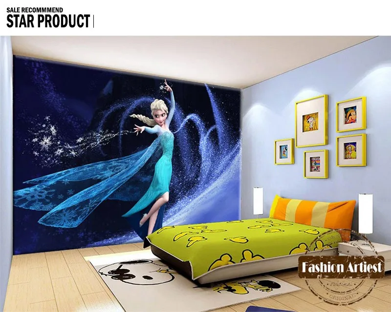 Пользовательские Дети девушки мультфильм обои росписи танцы Эльза Магия Снежная королева ТВ диван детская спальня гостиная фон
