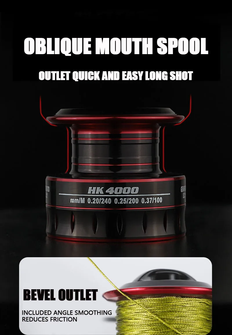 Модель AC4000-AC5000-это Рыболовная катушка среднего размера, размер и Емкость Катушки немного больше, чем 2000 3000 серий, рекомендуется работать с морским удочкой и № 4 / No.6 леской.