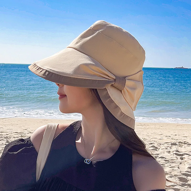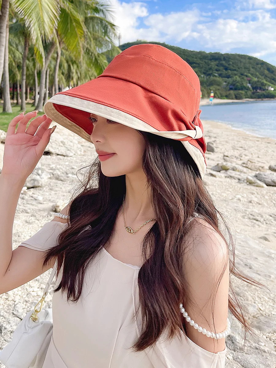 Летний женский галстук-бабочка, модная широкоугольная Солнцезащитная шляпа с широкими полями, уличная пляжная кепка в рыбацком стиле, защита от УФ лучей, шляпа-ведро