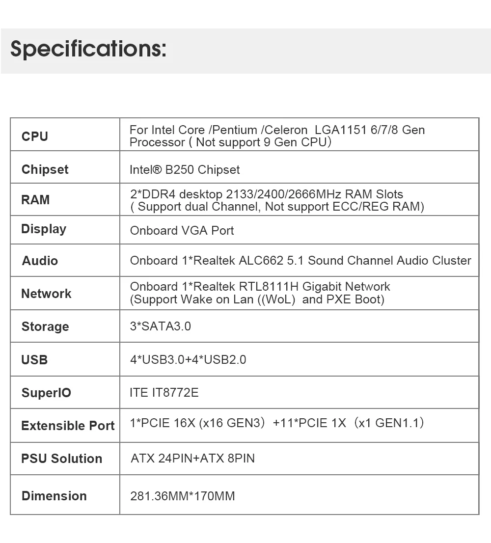 | 1 * PCIE 16X (x16 GEN3)+ 11 * PCIE 1X(x1 GEN1.1) | ||||||