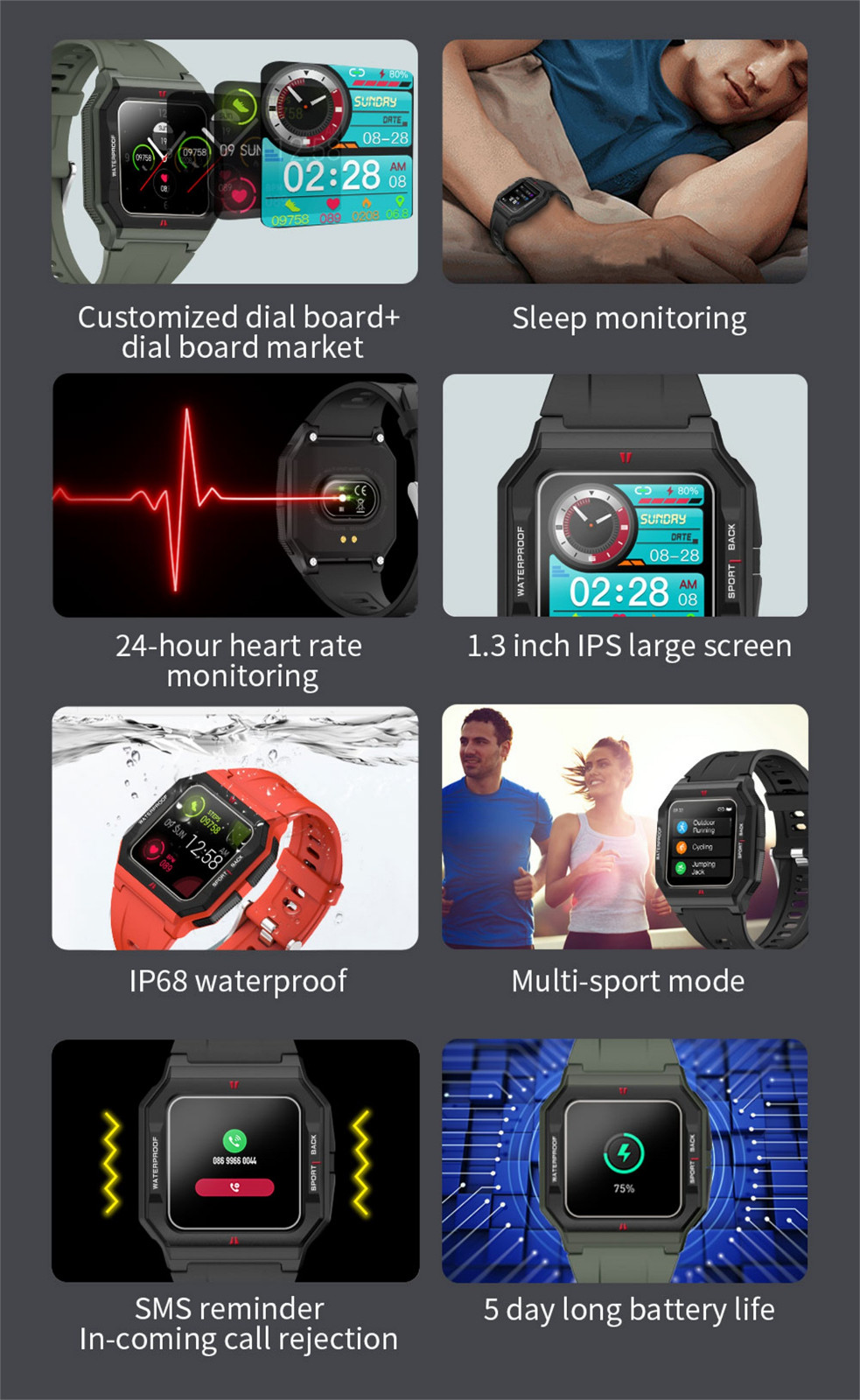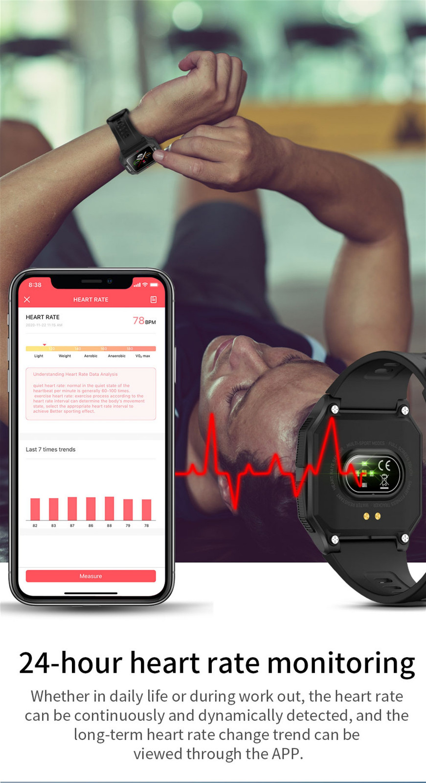 Смарт-часы P10 Мужская футболкаOu-ch Монитор сердечного ритмаIP67 Водонепроницаемый ФитнесTRAC-KERСмарт-часы Neo