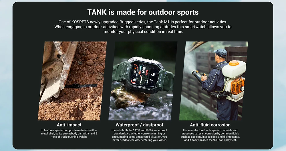 smartwatch 2022 Новинка Смарт-часы KOSPET TANK M1 прочные уличные с тонометром 5ATM IP69K