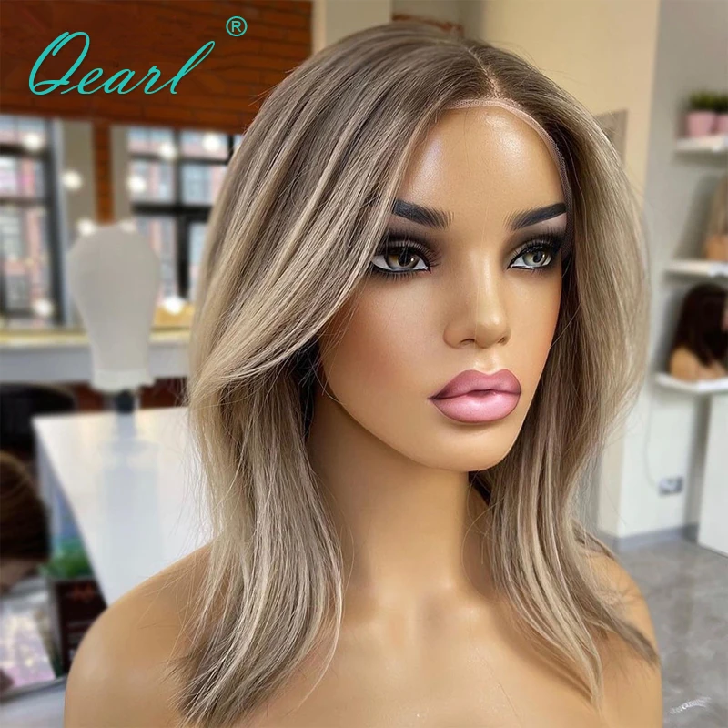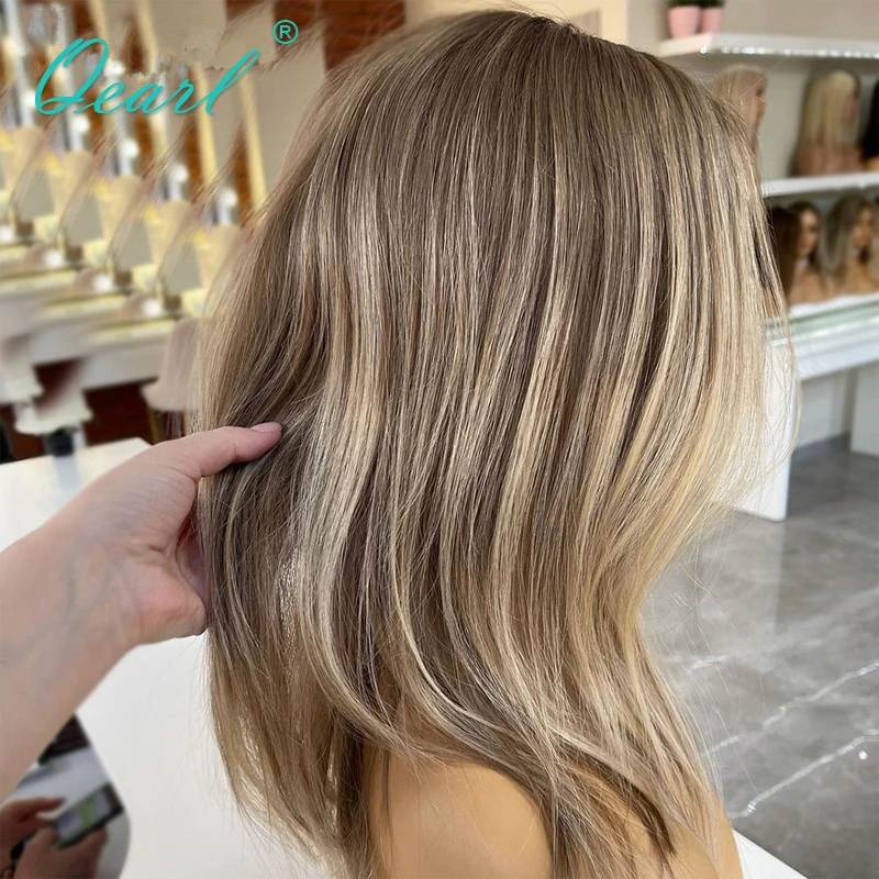 Коричневый блонд полный парик шнурка естественный прямой парик фронта шнурка Омбре медовый блонд основные человеческие волосы парик 13x4 плеча 150% Qearl