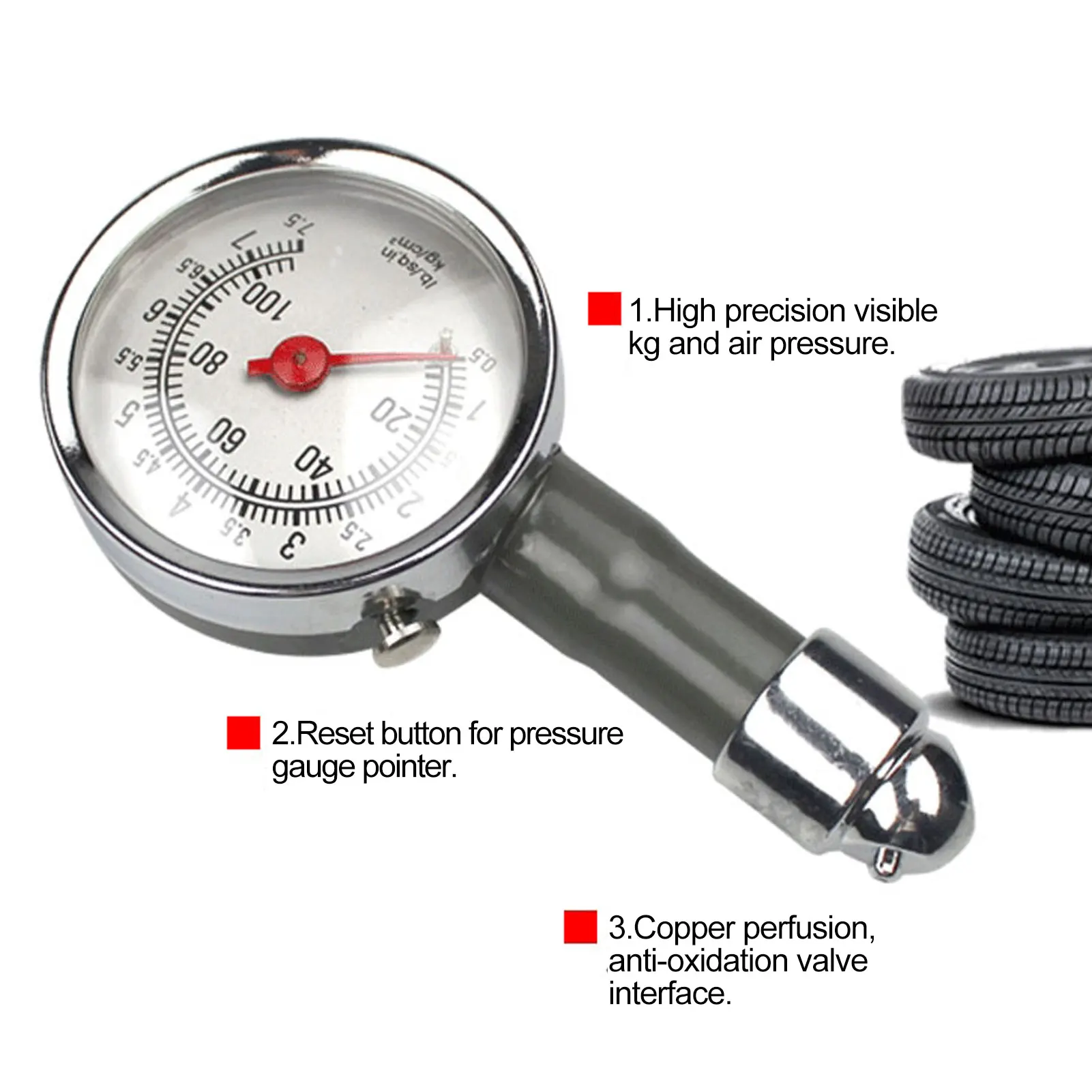 4. Широко используется: качество этого манометра для шин очень хорошее, и он имеет широкий спектр применений. Он очень подходит для измерения давления воздуха на шины автомобилей, грузовиков, велосипедов, мотоциклов, тракторов и прицепов.