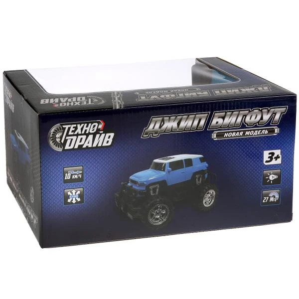 Мощный радиоуправляемый джип с высокой проходимостью — отличный подарок и для ребёнка, и для взрослого. Играйте в своё удовольствие или устраивайте гонки с друзьями! Яркий и эффектный "Бигфут" обладает высокой манёвренностью и умеет ездить в разных направлениях. Большие колёса с плотной резиной позволяют машине проходить даже сложные препятствия. Игрушка оснащена светодиодами, которые загораются во время игры. Система радиоуправления работает на частоте 27 МГц. Особенности: - скорость 10 км/ч, - может ехать во все стороны, - световые эффекты, - масштаб 1:18, - передача данных по радиоканалу 27 МГц. Работает от 6 батареек типа АА.