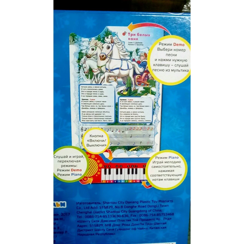 Послушать и выучить любимые песенки малыш сможет с музыкальной книжкой–игрушкой «Пианино». Красочные, яркие герои популярных мультфильмов, тексты песен, ноты и, самое главное, режим «Караоке+» - исключительные достоинства этой книги. Для работы необходимы 3 батарейки типа "АG/LR44" (миниатюрные), входят в комплект.