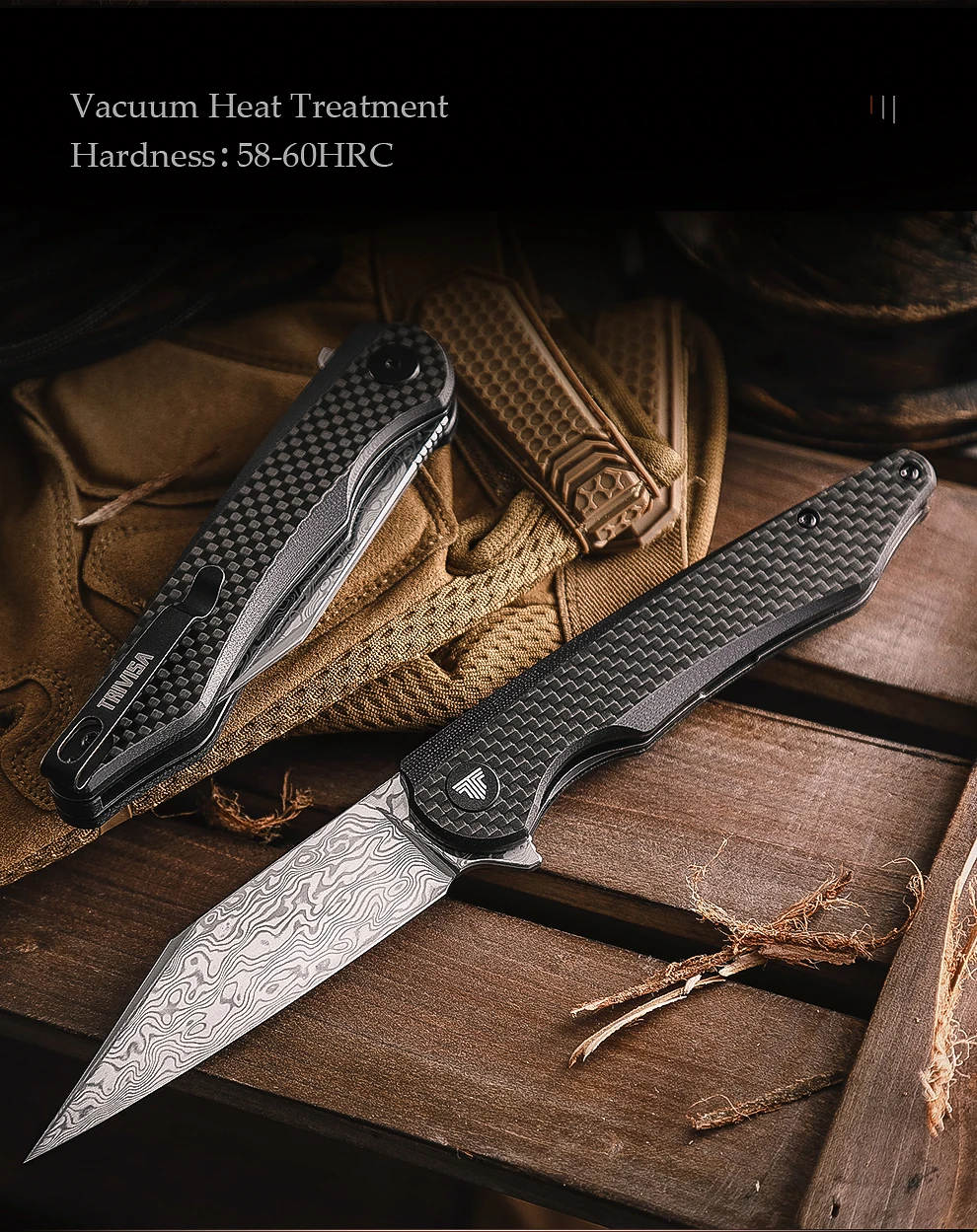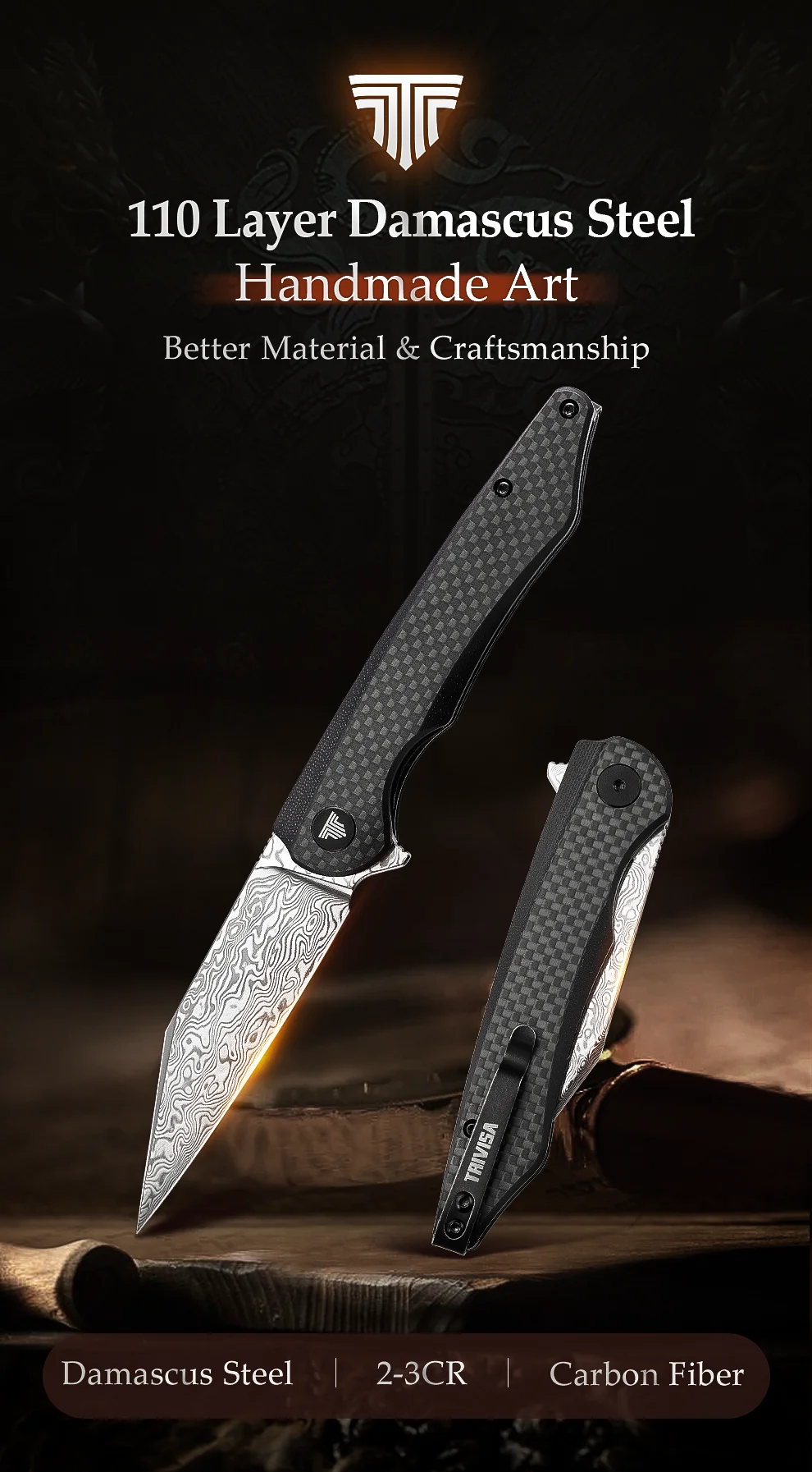 TRIVISA Lynx серии 3,66 дюймов 110 слоев дамасской стали складной нож