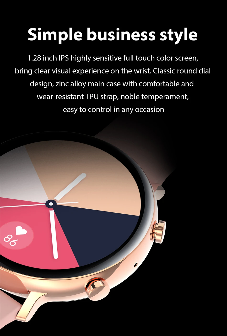 ● 1,28 дюймовый IPS полноразмерный сенсорный экран
