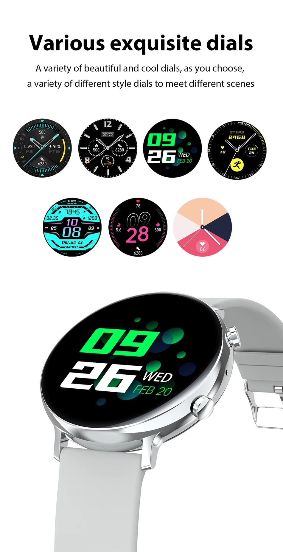 ● Приложение для часов face push, управление музыкой, время, удаленная камера, поиск диапазона, шагомер, вибрационное напоминание, анти-потеря, расчет расстояния, будильник.