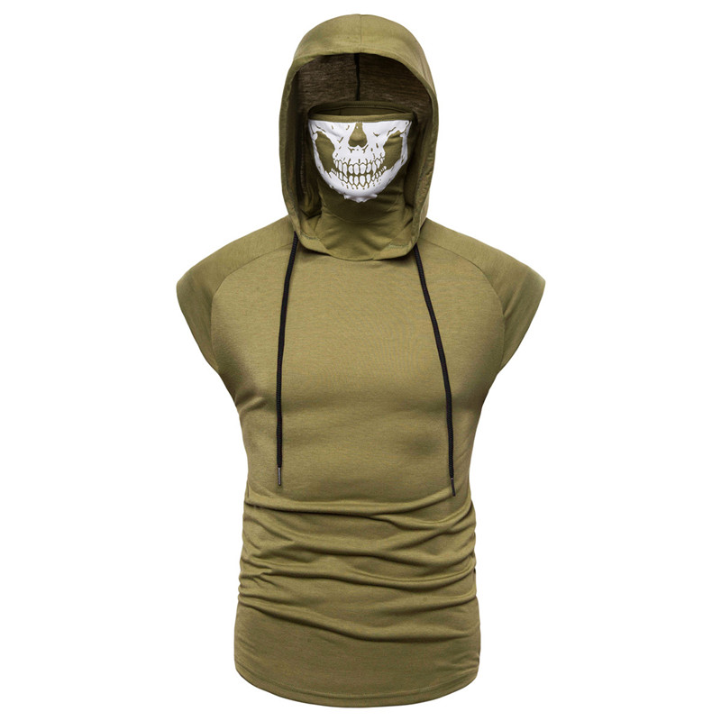 Футболка мужская стрейчевая с капюшоном Повседневная рубашка коротким рукавом