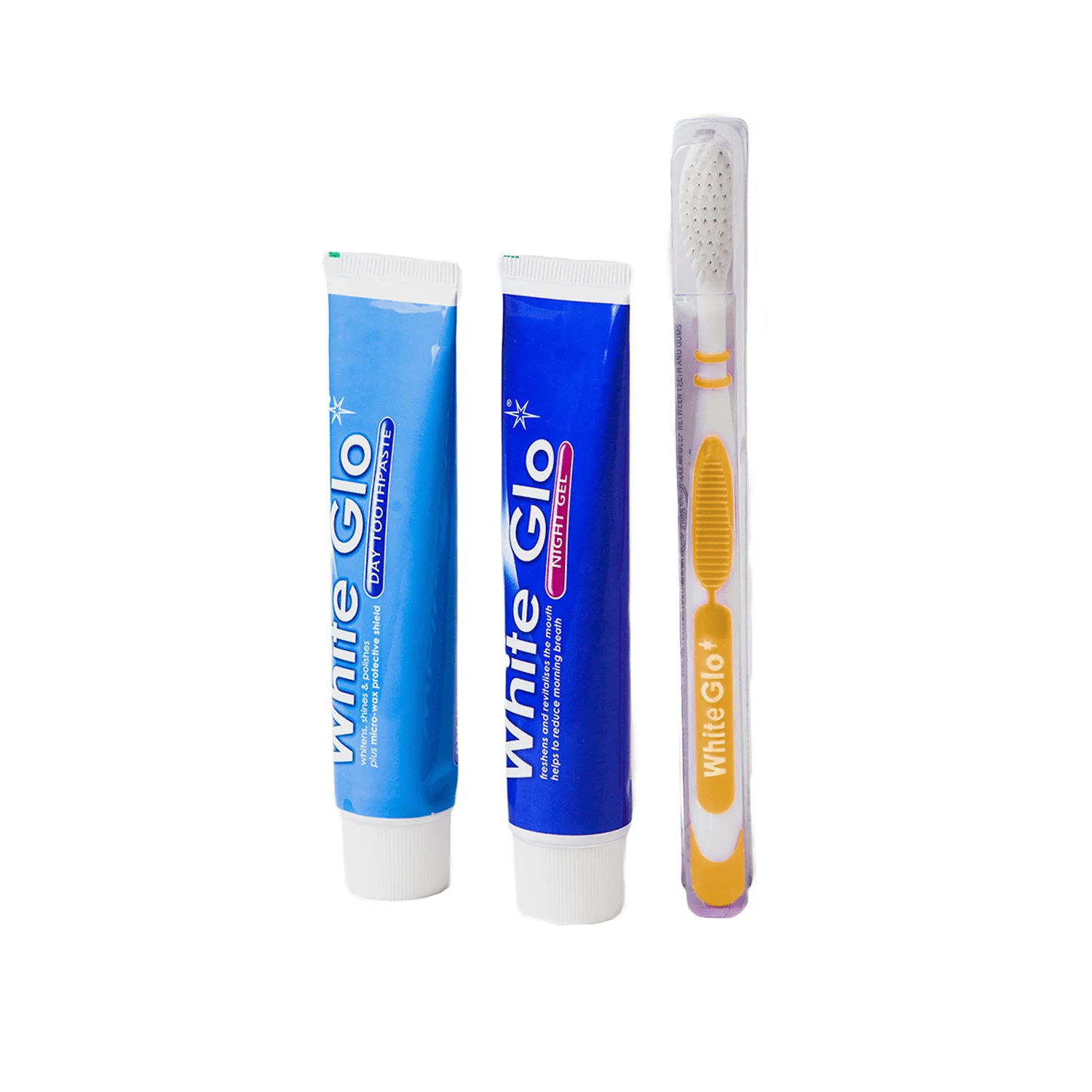 Революционное средство White Glo «Day and Night» обеспечит уход вашей ротовой полости 24 часа в сутки. Ночной гель содержит экстракт зеленого чая, который оздоравливает десна, уменьшает сухость во рту, оставляет дыхание свежим до самого пробуждения. Дневная зубная паста отбеливает эмаль, устраняет желтизну и глубокие потемнения, а так же предотвращает повторное появление пятен благодаря уникальной технологии Micro-Wax.