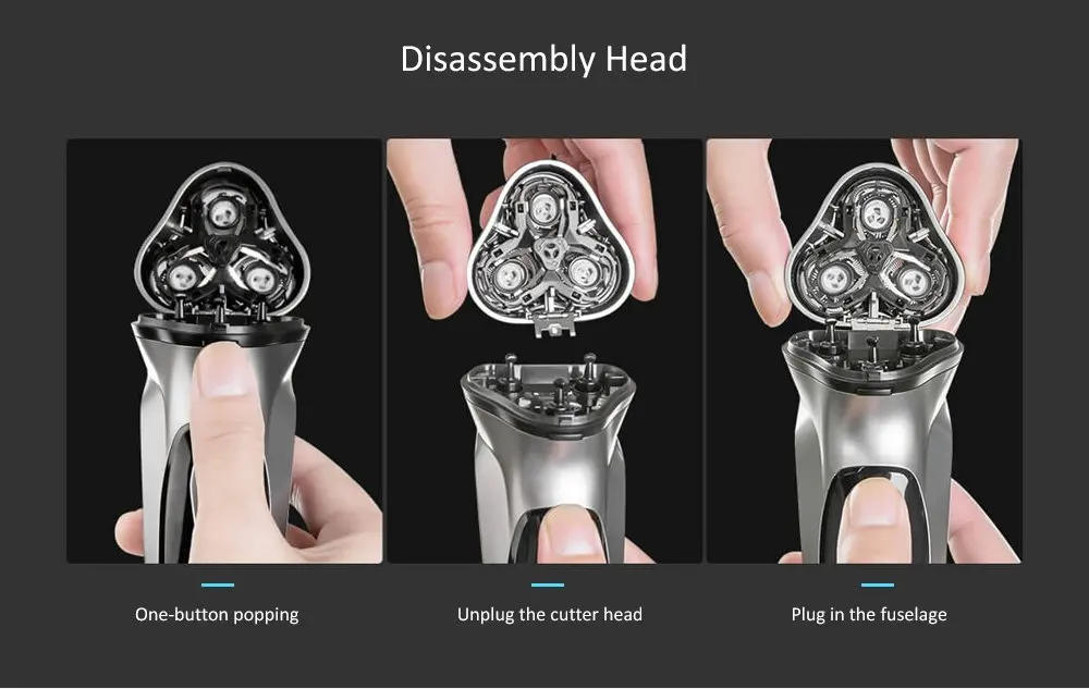 Модуль с бреющими головками электробритвы BlackStone можно отделить от корпуса и промыть прямо под струей воды, после чего установить их обратно на бритву - все легко и просто.