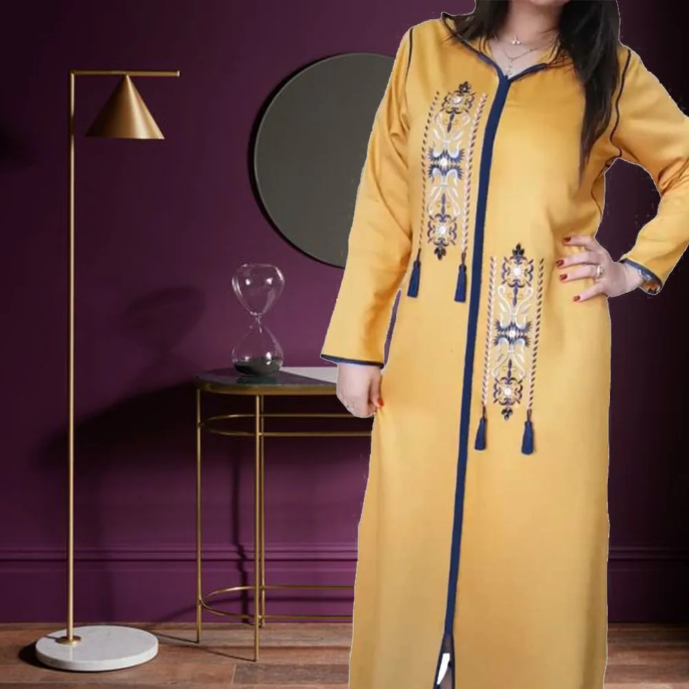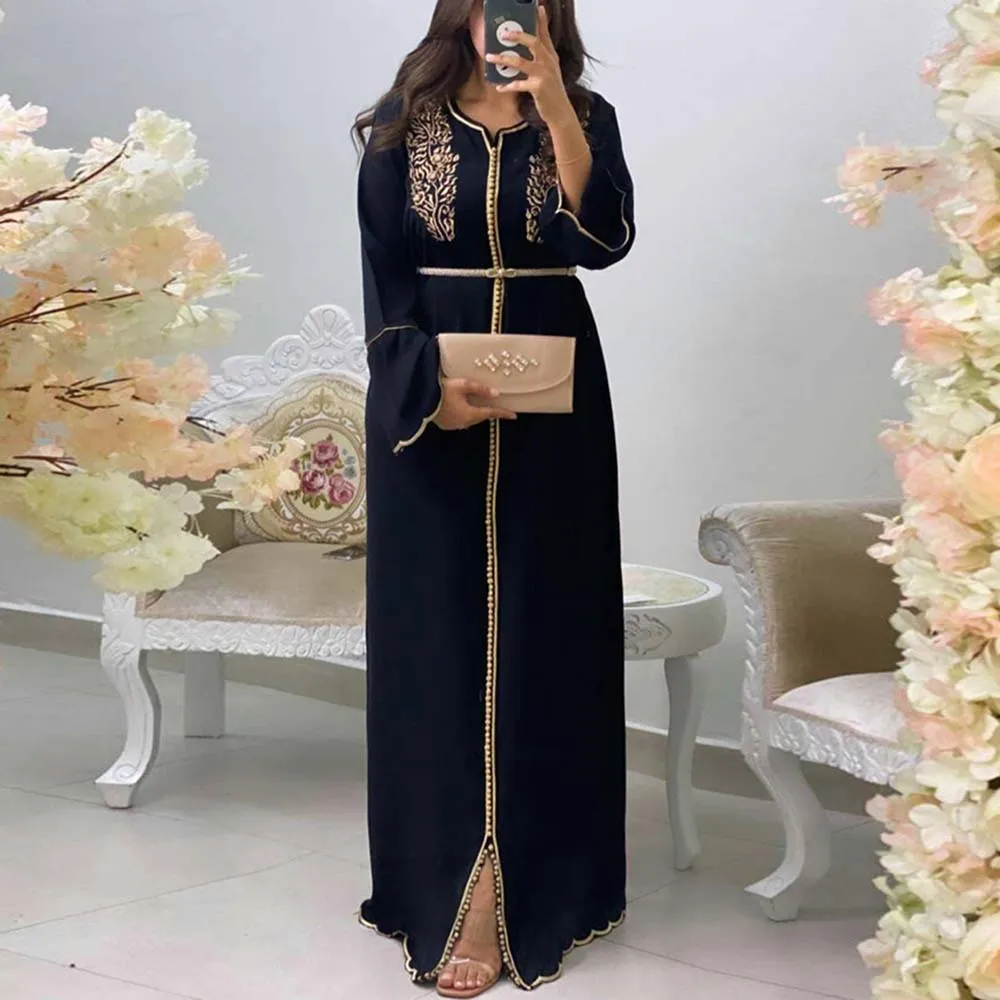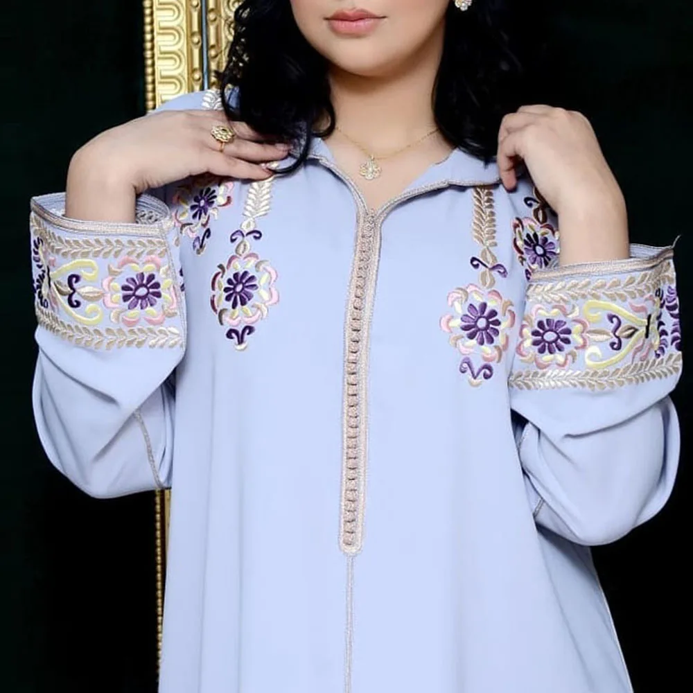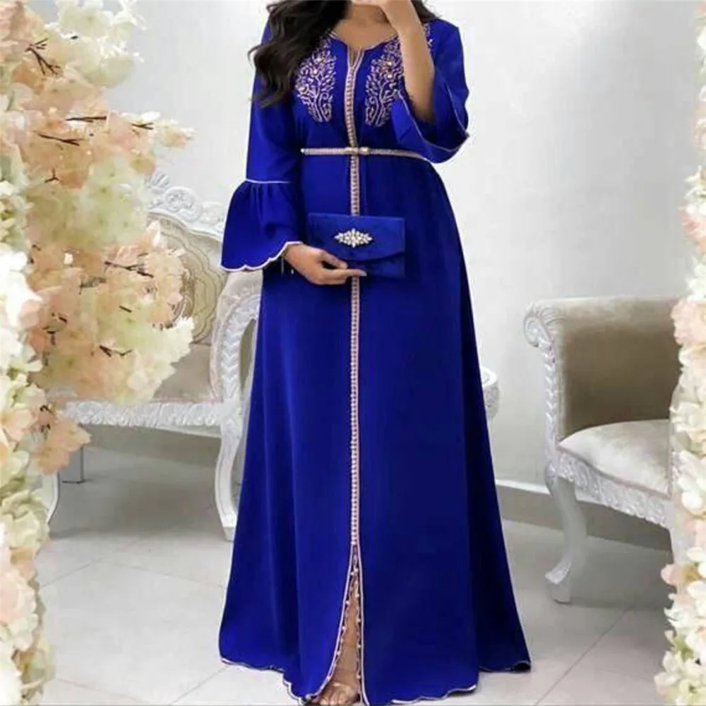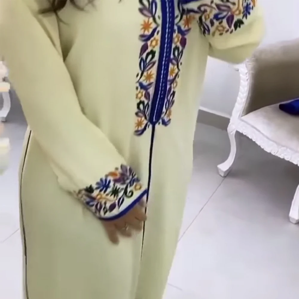 Longue robe de printemps à fleurs brodée pour femmes, кафтан, mode dames, vêtements musulmans, dubaï, manches évasées, robes de soirée de Banquet formellesKaftan-Vestido largo Floral bordado para mujer, ropa musulmana de moda, vestidos formales de fiesta para banquete, manga acampanada de Dubai, Primavera