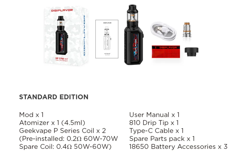 Оригинальный Digiflavor XP Kit 77 Вт бокс мод бак 4,5 мл поддержка 18650 батареи
