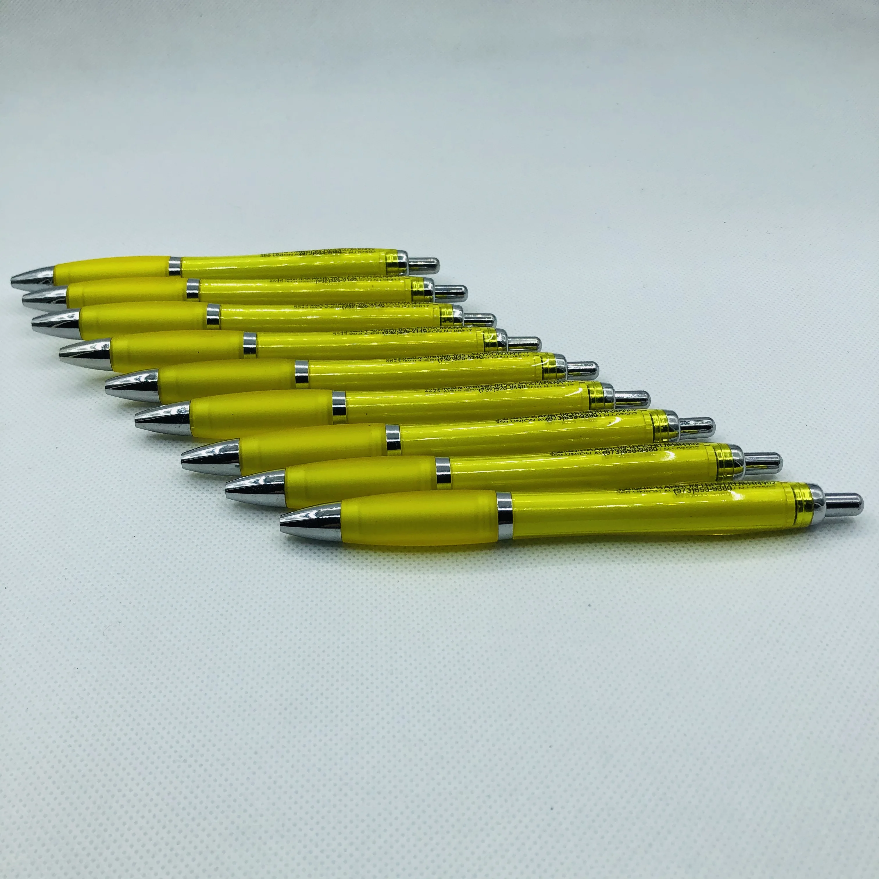 Лидер продаж, низкая цена, желтый прозрачный пластиковый мяч, ручка для отелей, школьная Ручка компании:
