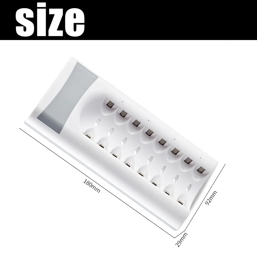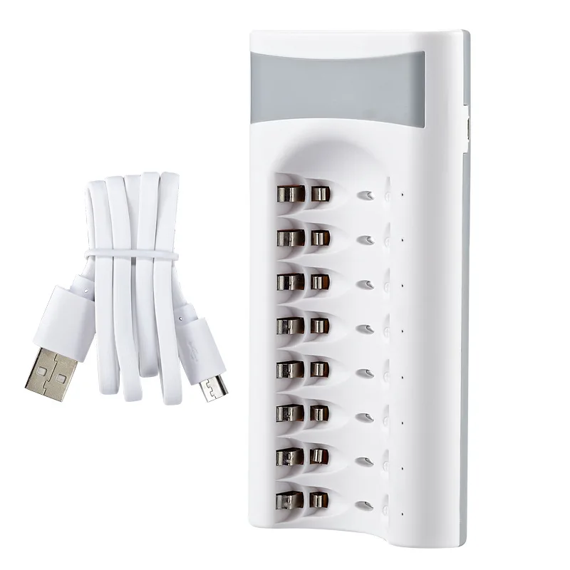 Особенности:1 может заряжать 1 ~ 8 шт AA/AAA NI-mh/NI-CD аккумуляторы;2 зеленый светодиодный индикатор, указывающий статус зарядки;3 с постоянным напряжением и током для защиты батарей от повреждений;4 входа Micro USB 5 В;Для девочек от 5 до 8 лет-образными пазами независимой зарядкой;6 usb-интерфейс, гибкий с гнездом, с автомобильным зарядным устройством, с компьютером и т. д.;7 смарт-чип, защита от перезаряда и переразряда, перегрузки по току и короткого замыкания. Характеристики:1 Название: зарядное устройство yeckpowo с 8 разъемами USB AA / AAA2 бренда: yeckpowo3 Входное напряжение: 5 В 2 а постоянного токаВыходное напряжение: DC 1,2 V 1600MA4 Вес: 150 г Предупреждение:1. Не заряжайте щелочную или углеродную батарею;2. Не заряжайте литий-ионный аккумулятор;3 подходит только для аккумуляторов Ni-Cd или Ni-mh;4. Держите подальше от детей.
