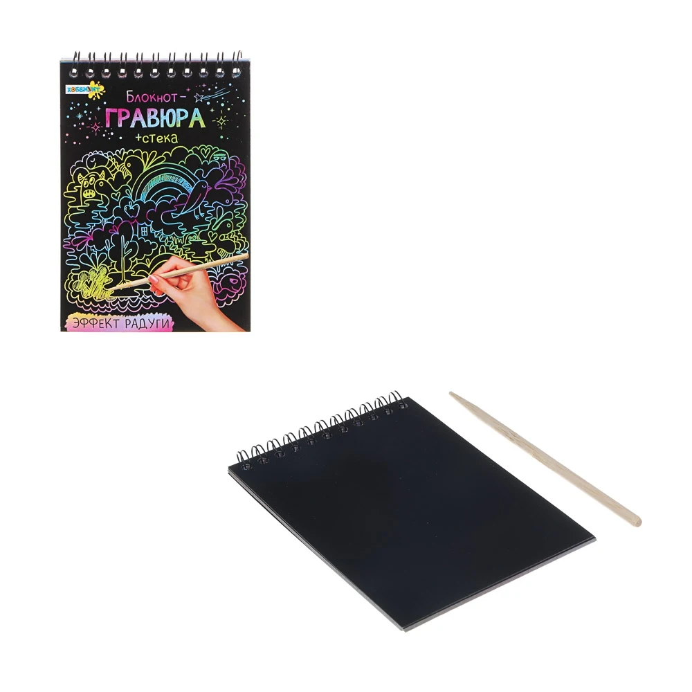 Блокнот-гравюра из 8 страниц позволяет творить в свое удовольствие — делать надписи, узоры и забавные картинки.