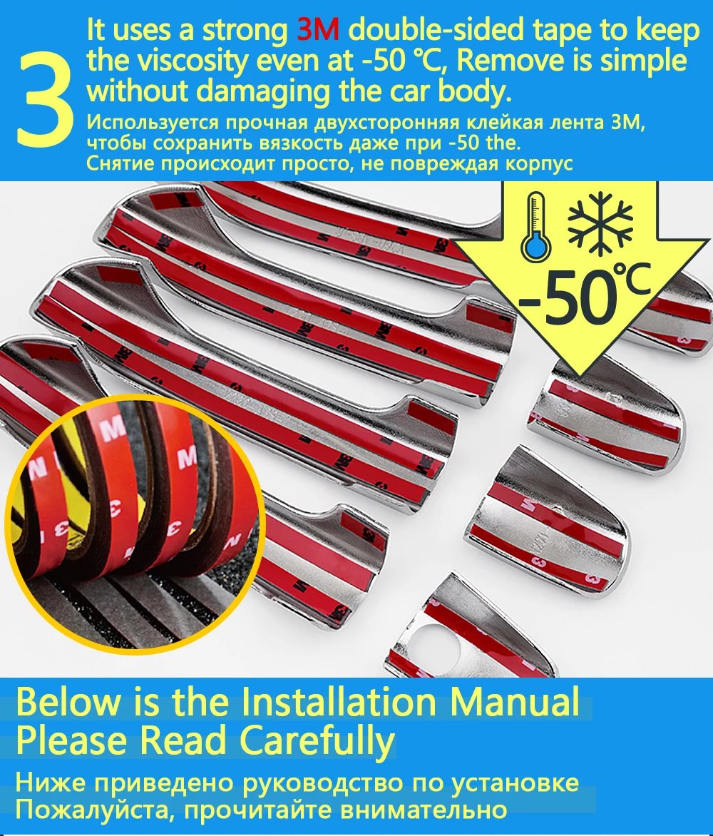 Они оснащены высокой прочности лента 3M клейкого материала на задней части, просто снимите пленку с подкладкой и нанесите! Занимает несколько секунд, никаких инструментов не требуется!