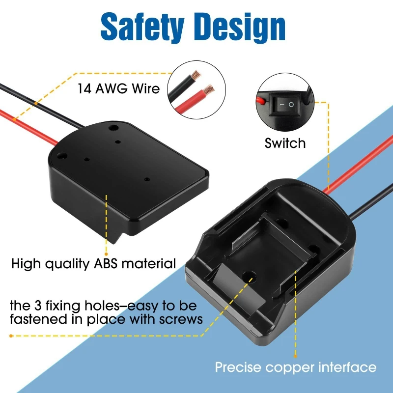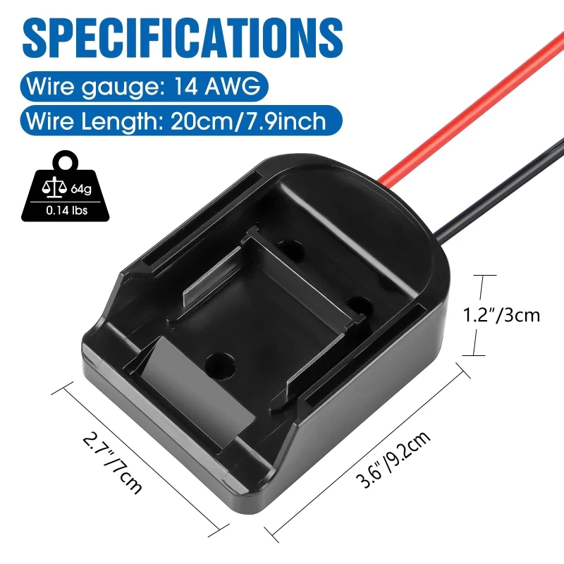 A9LC портативный разъем адаптера батареи для makita 14,4-60 в литий-ионная батарея с 14 Awg проводов 10A переключатель ввода/вывода Особенности на 100% абсолютно новый и высокого качества Этот продукт совместим с Miwatch 14,4-60V плоский нажимной литиевый аккумулятор. Вы можете предоставить DC 14,4-60V источника питания размерную сетку США самостоятельно. (например, игрушечные машинки, огни, различные инструменты для ухода за животными) Черный провод и красный провод имеют 14AWG силиконовый провод 20 см. С переключателем ввода/вывода 10A. При использовании, будьте осторожны, чтобы не трогать черные и красные провода вместе, чтобы предотвратить короткое замыкание. Один вес 90 грамм. Спецификация: Материал: АБС-пластик Тип: makita, стандартная версия Размер: Approx.8.5x6.2x3cm/3.35x2.44x1.18in Вес нетто: 40 г Посылка включает в себя: 1x адаптер батареи Примечание: допускается погрешность в 1 мм из-за ручного измерения. Из-за разницы между различными мониторами изображение может не отражать фактический цвет изделия.