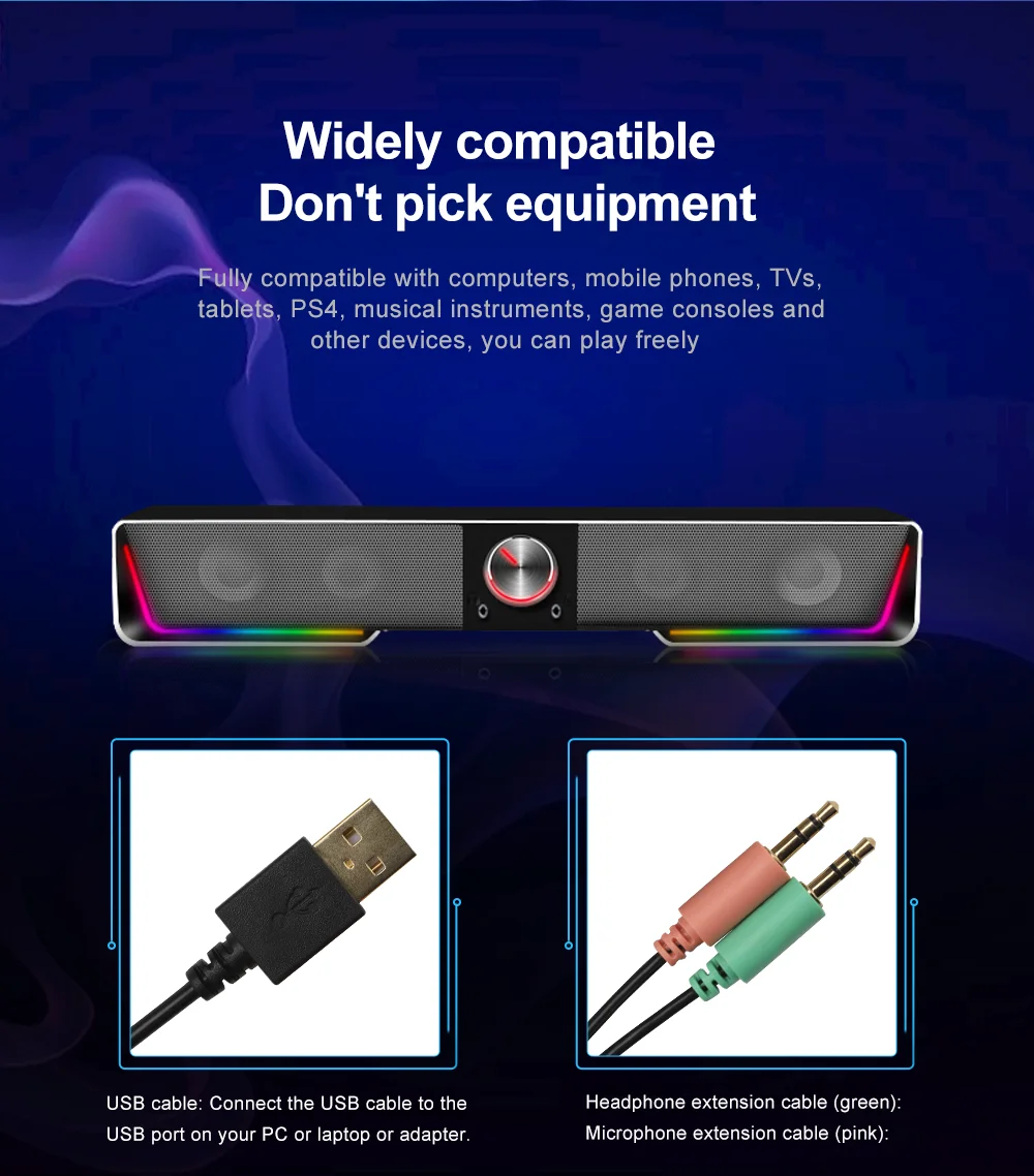 Redragon звуковая панель с реверсивным звуковым пакеты аудио мастерство с тонко настроенной двойной 1,5 W драйверы вывести звук к жизни фантастически динамического звука Поддержка BT и AUX вход RGB светильник ing, легко включить/выключить светильник или изменить цвет Режим с нажатием кнопки на верхней части проводное подключение к другим устройствам через 3,5 мм Шнур для подключения внешних устройств удивительно компактный компьютер Акустическая система Пижама рассчитана на худое телосложение достаточно для того чтобы сидеть на плоской подошве ниже мониторов для того, чтобы сэкономить пространство держит ваш рабочий стол помех Бесплатно