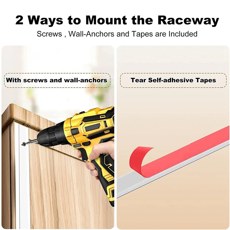Быстрая установка за 5 минут с двумя простыми способами: с предоставленными 12 шт предварительно вырезанных самоклеющихся лент можно установить быстро, не повреждая стену, установка-это ветерок для любого человека даже без опыта; Или вы можете выбрать винты и якоря, чтобы сохранить свой кабель на месте. С нашей добавленной стоимостью, включая 100 шт. крепких застежек на молнии, так что вы можете легко приручить грязные провода, чтобы сделать их аккуратными и легко доступными после того, как вы поместите шнур в кабельный канал.
