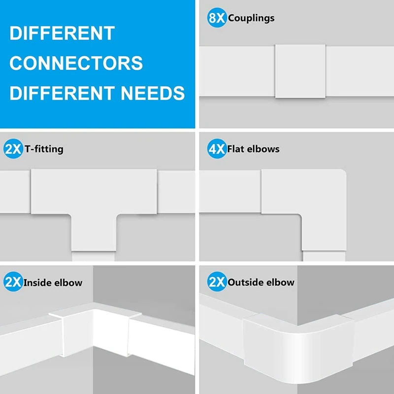 12 шт набор настенных шнуров Hider: в эти дни эти Грязные Кабели по всему вашему дому заканчиваются сейчас. Крышка Кабеля скрывает и организует неприглядные шнуры дома и в офисе. Включая 12 ПВХ каналов с предварительно вырезанными самоклеящимися лентами; Каждый канал L15.7in x W1.18in X H0.6in, общая длина 188 дюймов. 20 шт. различных разъемов удовлетворят все ваши потребности с нашим набором разъемов (прямые/T/Угловые/внутренние Налокотники и внешние налокотники/100 шт. застежки-молнии/20 винтов/20 якорей).
