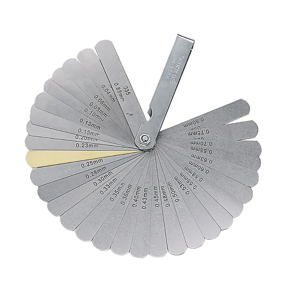Инструмент содержит зазубрину лезвия для легкого удаления лезвия и идеально подходит для использования щебня клапана и измерения метрического зазора между двумя предметами или частями.