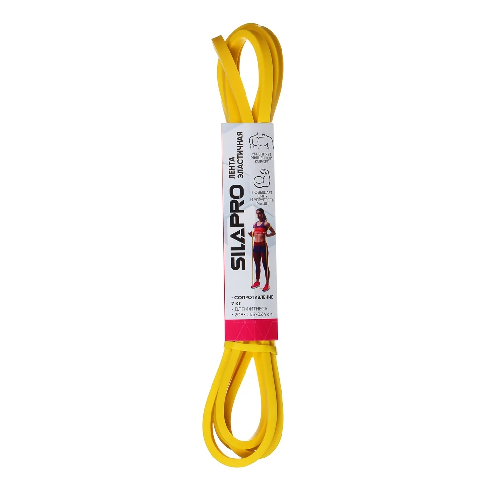 Эластичная силовая лента для фитнеса от SILAPRO - это аксессуар, с которым делают упражнения для рук, спины и ягодиц дома и в спортзале.