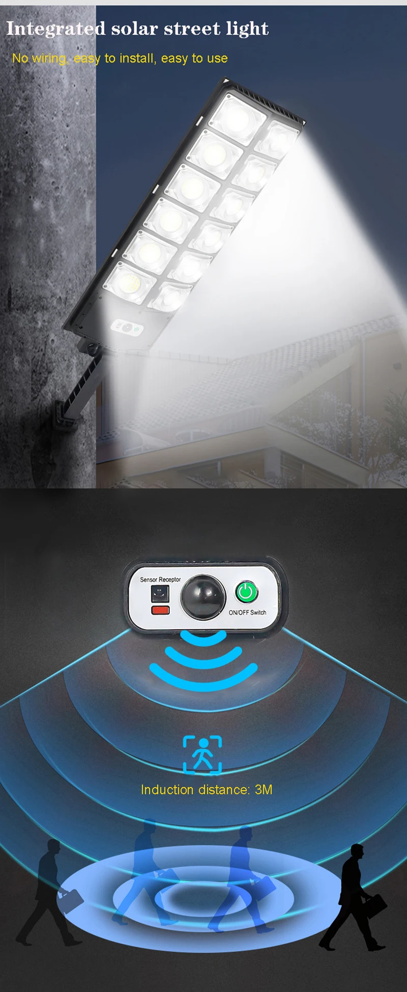 1. Пожалуйста, убедитесь, что солнечный светильник установлен в пределах 10 метров, и убедитесь, что солнечная панель находится в месте, которое может полностью противостоять солнцу.